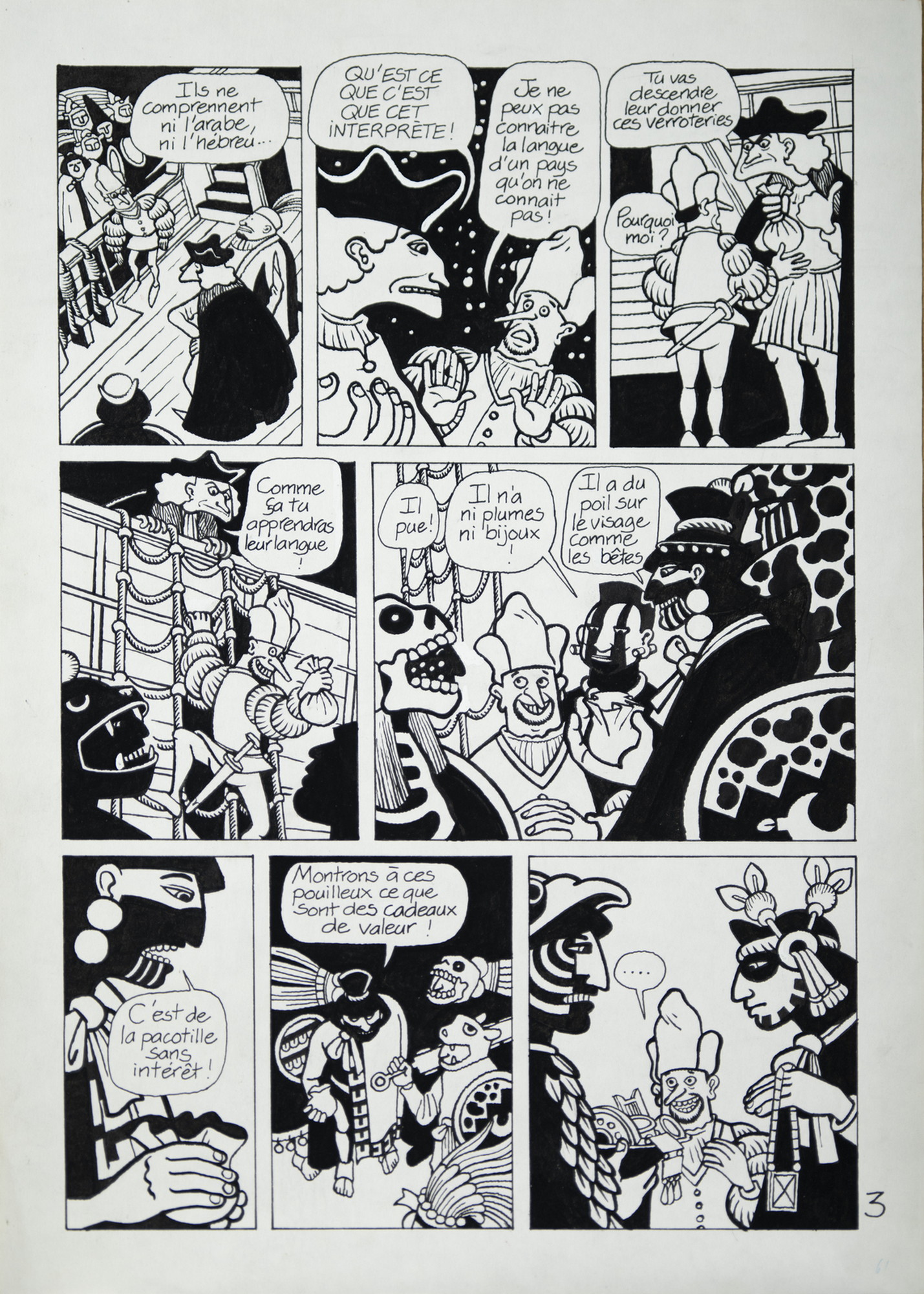 David B Nourrir Le Monde (Una storia di Cristoforo Colombo) . 1994. Inchiostro nero su carta indiana firmato al retro. Cm 30,00 x 27,00. Pag.3