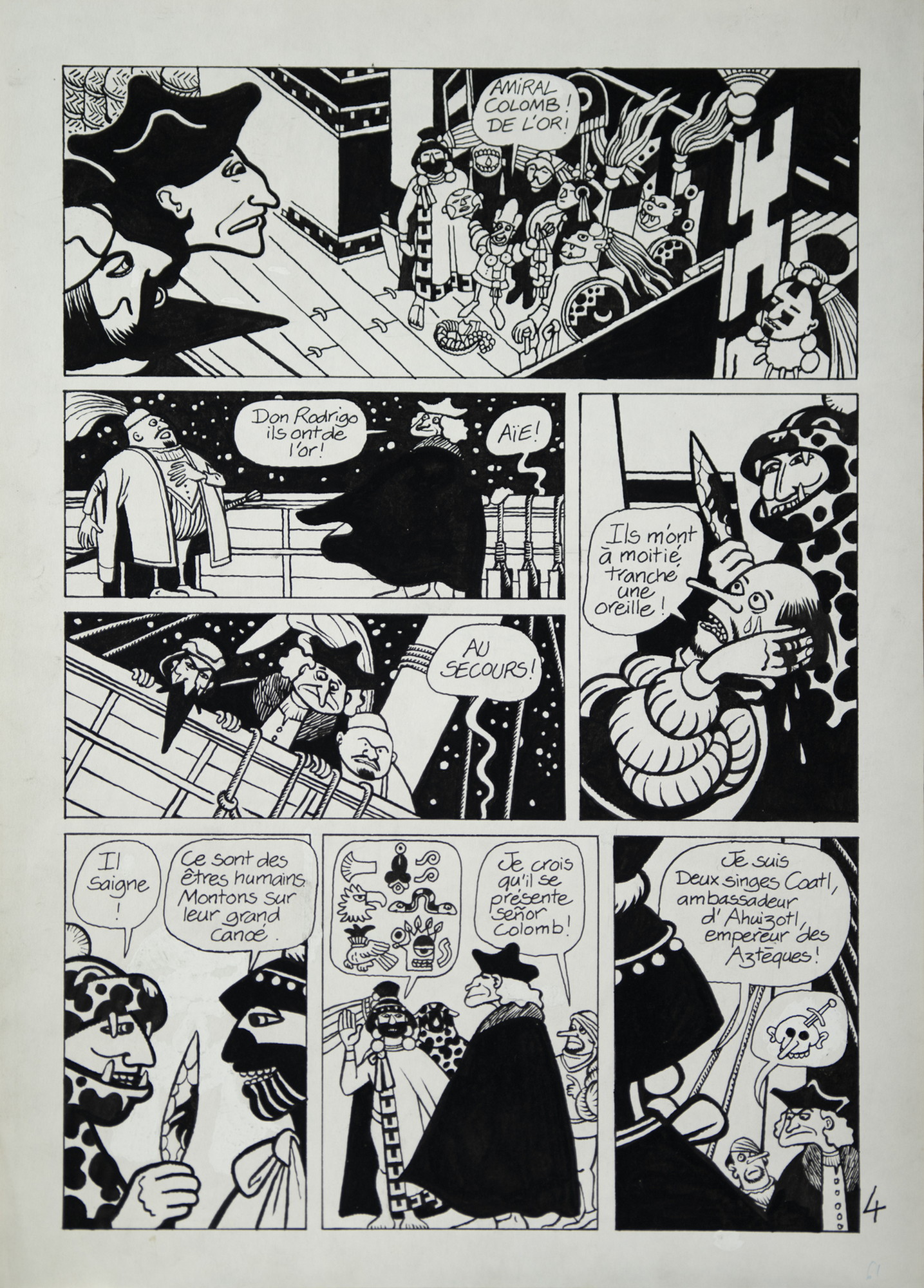 David B Nourrir Le Monde (Una storia di Cristoforo Colombo) pagina 4. 1994. Inchiostro nero su carta indiana firmato al retro. Cm 30,00 x 27,00. Pagina 4