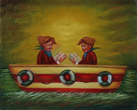 LOMBARDO SALVO (n. 1948) La lettura. Olio su tela . Cm 50,00 x 40,00. Firma in basso a destra. Al retro timbro dell'artista, titolo e numero d'archivio. Autentica dell'artista su fotografia.