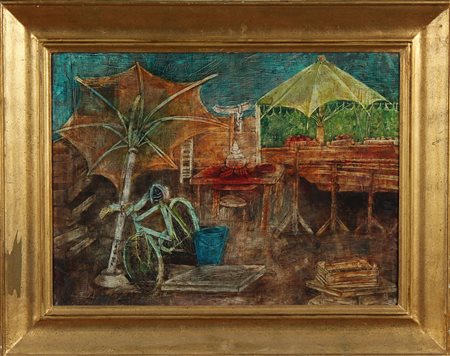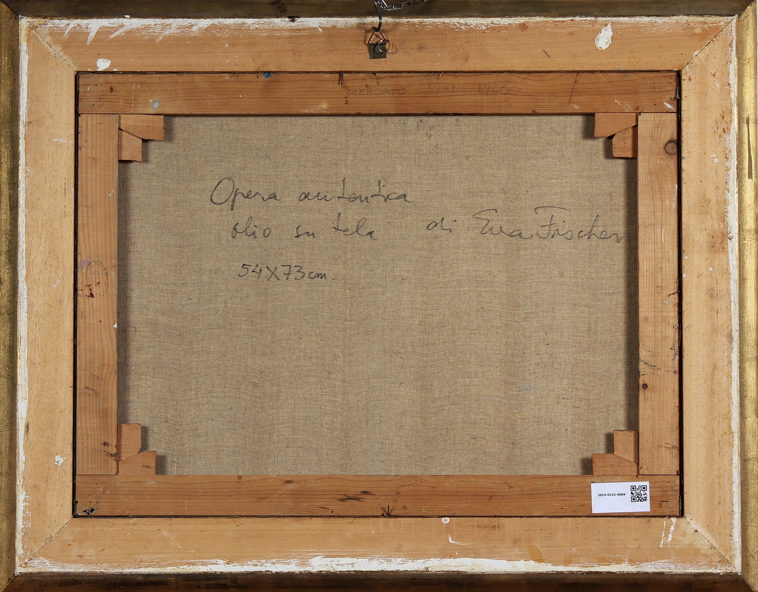 FISCHER EVA (n. 1920) Senza titolo. Olio su tela . Cm 73,00 x 54,00. Firma in basso a destra e al retro. Cornice presente