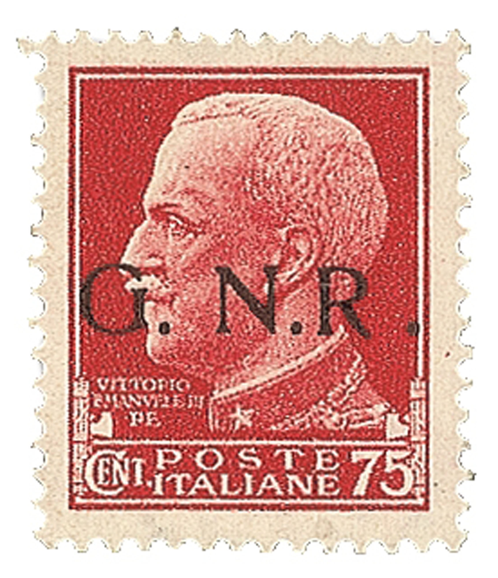 RSI - G.N.R. Brescia - 1943 - 75 cent75 cent (478/Iq errore l - CEI 9/Ia) con decalco + R accostato a N (posiz. 86) - gomma integra