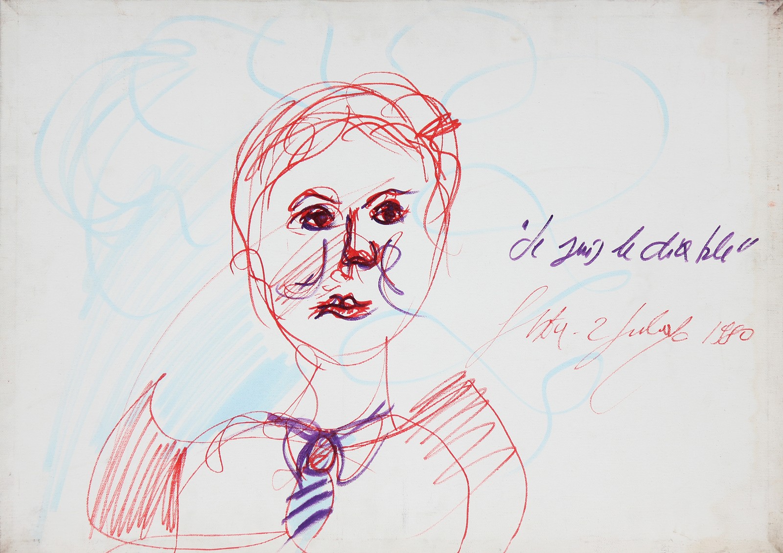 FESTA TANO (1938 - 1988) Je suis le diable. 1980. Pennarello su tela. Cm 70,00 x 50,00. Firma, titolo e anno sul fronte.