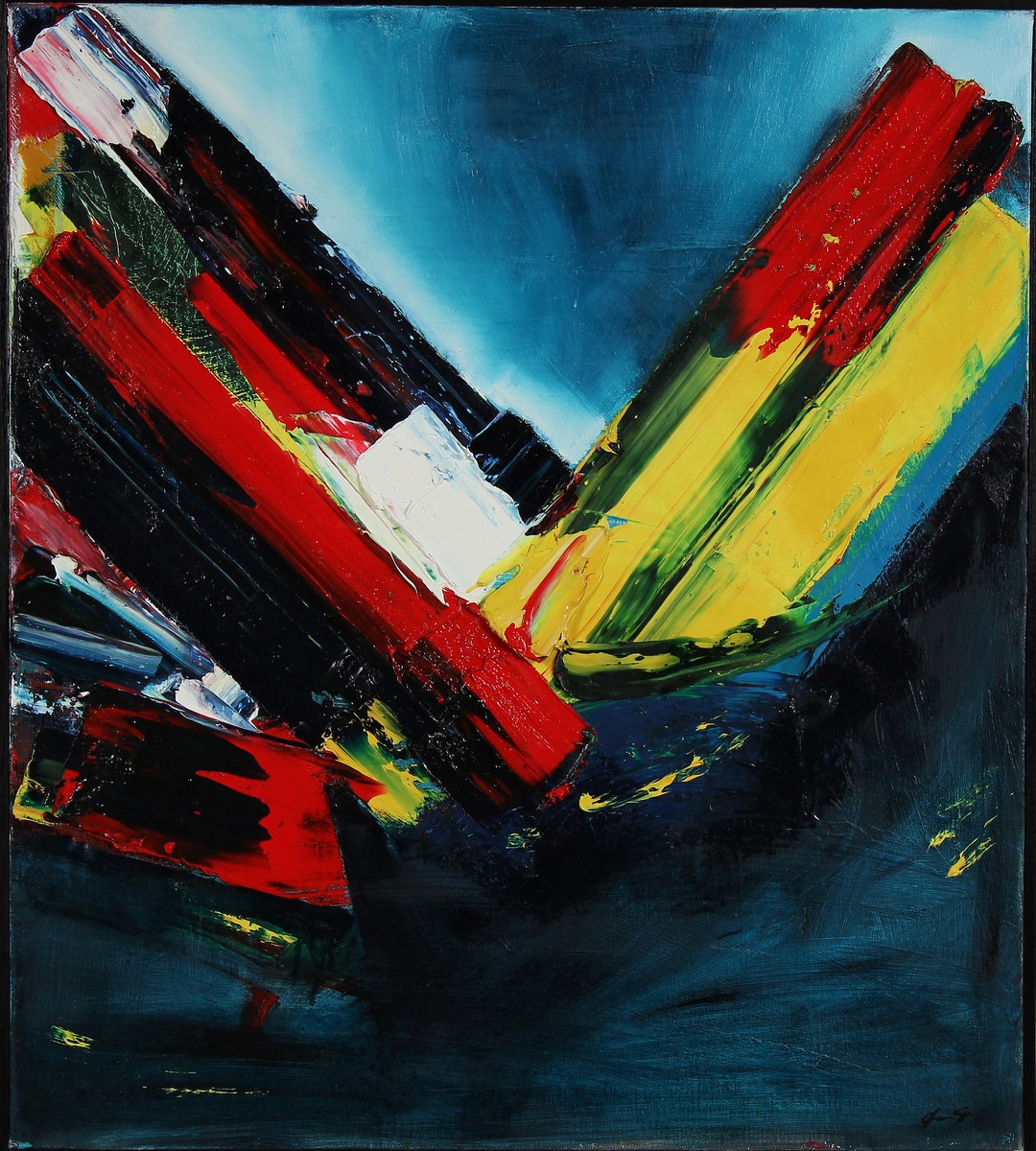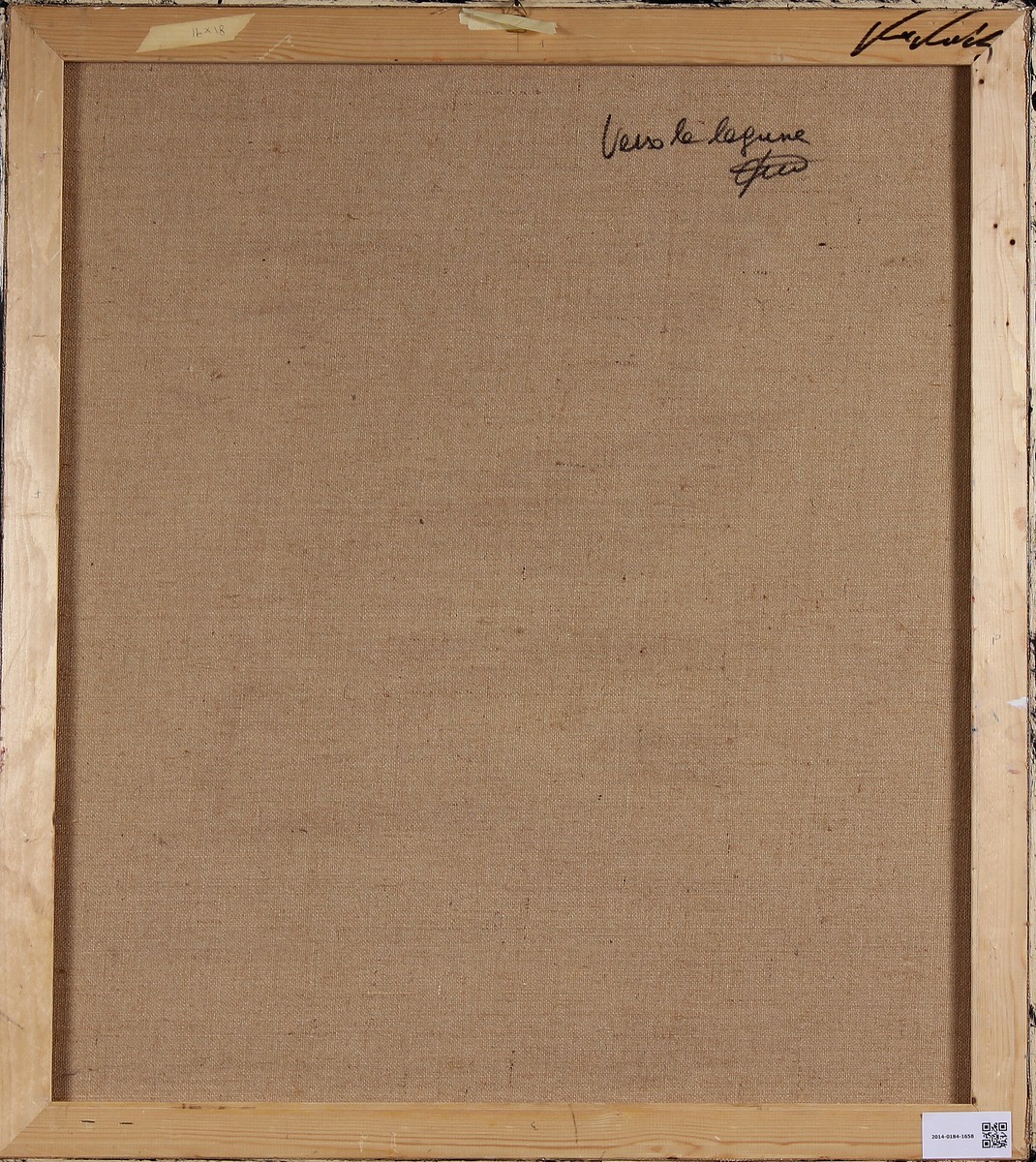 DELUTTI PIERLUIGI (n. 1959) Verso la laguna. olio su tela (materico). Cm 80,00 x 90,00. Firma in basso a destra. Al retro titolo e firma.