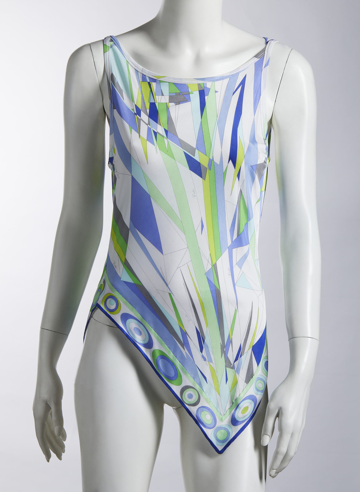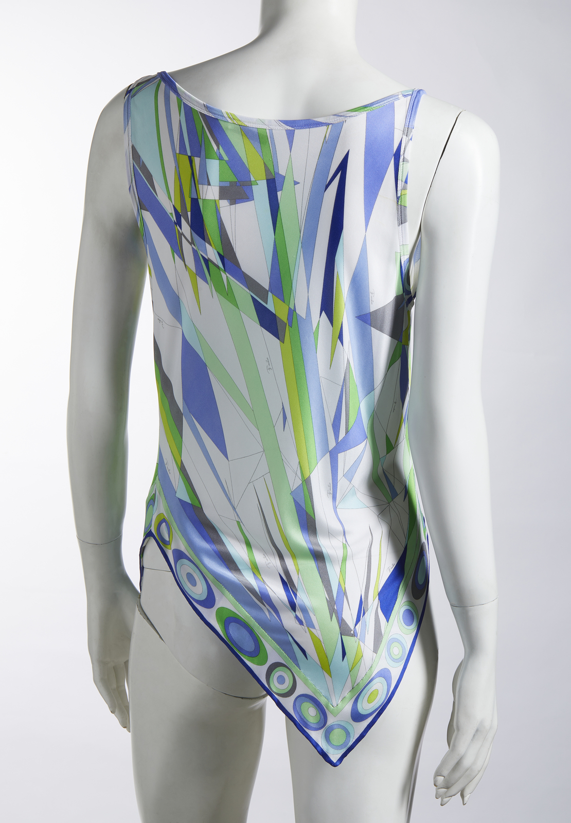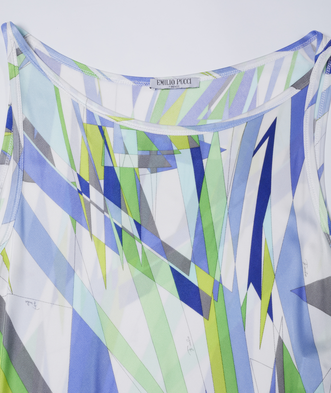 PUCCI EMILIO Maglia. . . Maglia senza maniche dal taglio irregolare nei colori del bianco, verde e azzurro.