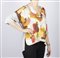 HERMES Maglia Hermes. . . Maglia in tessuto con motivo geometrici di colore rosso, giallo e marrone su fondo cipria. La maglia ha le maniche corte, scollo a V. Parte della maglia è in seta e parte è in cotone. Taglia 36: lunghezza 60 cm; vita 64 cm;