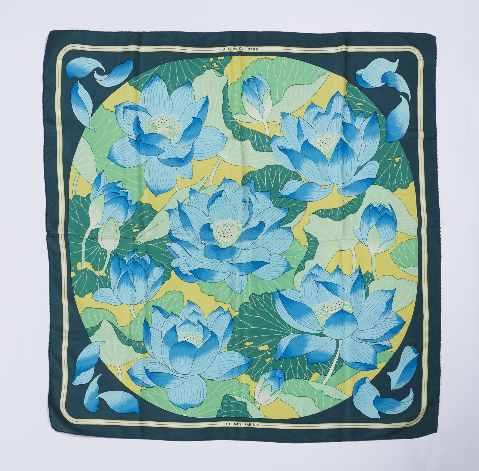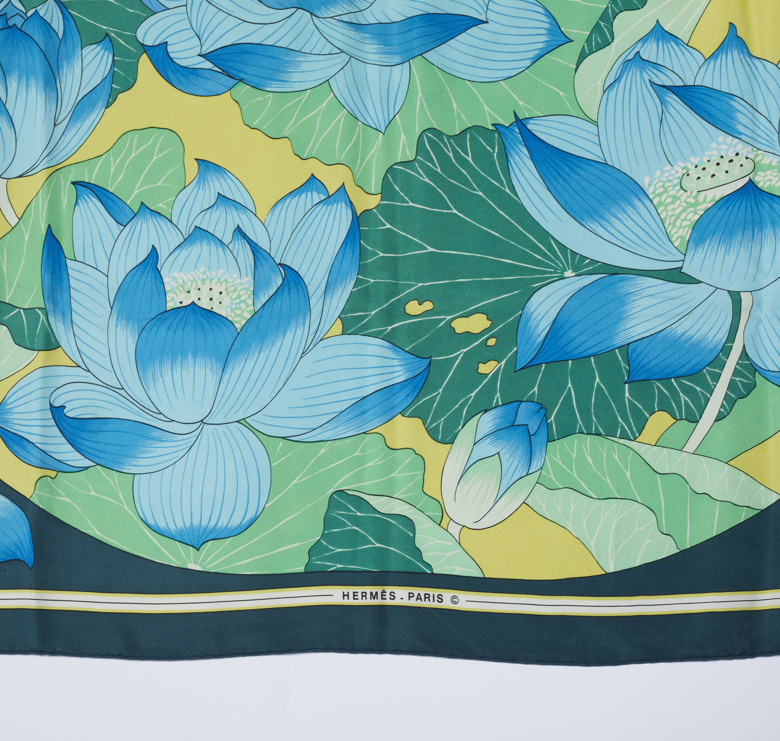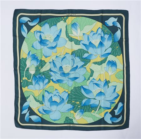 HERMES Foulard "Fleurs de lotus" . Seta. Cm 87,00 x 88,00.