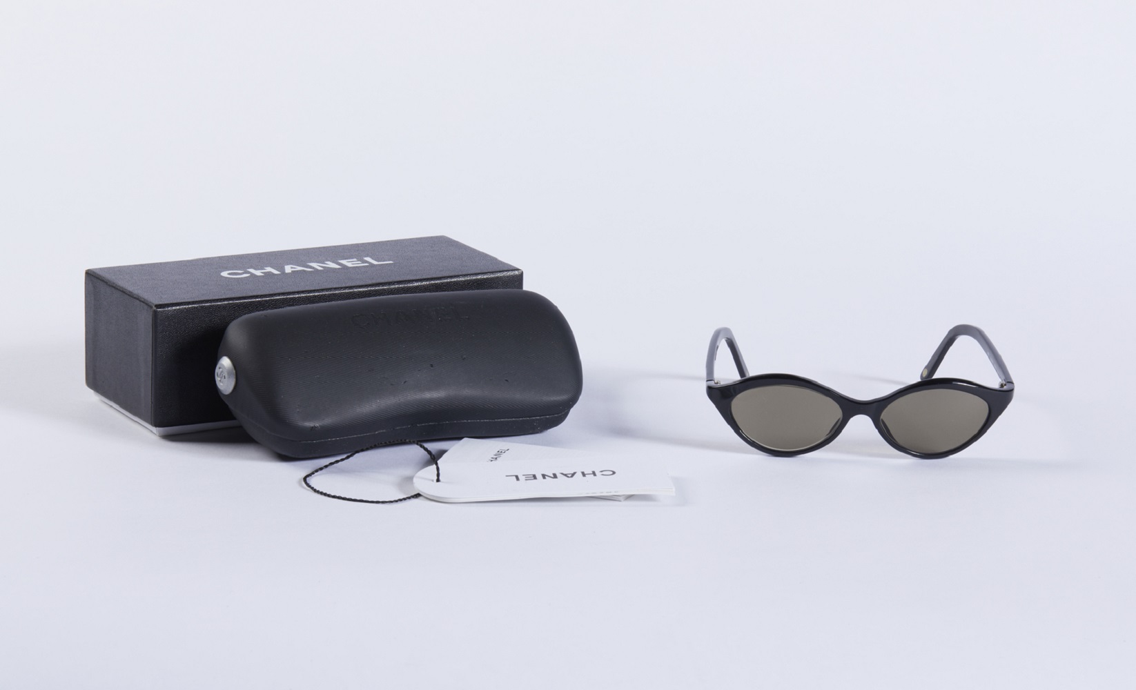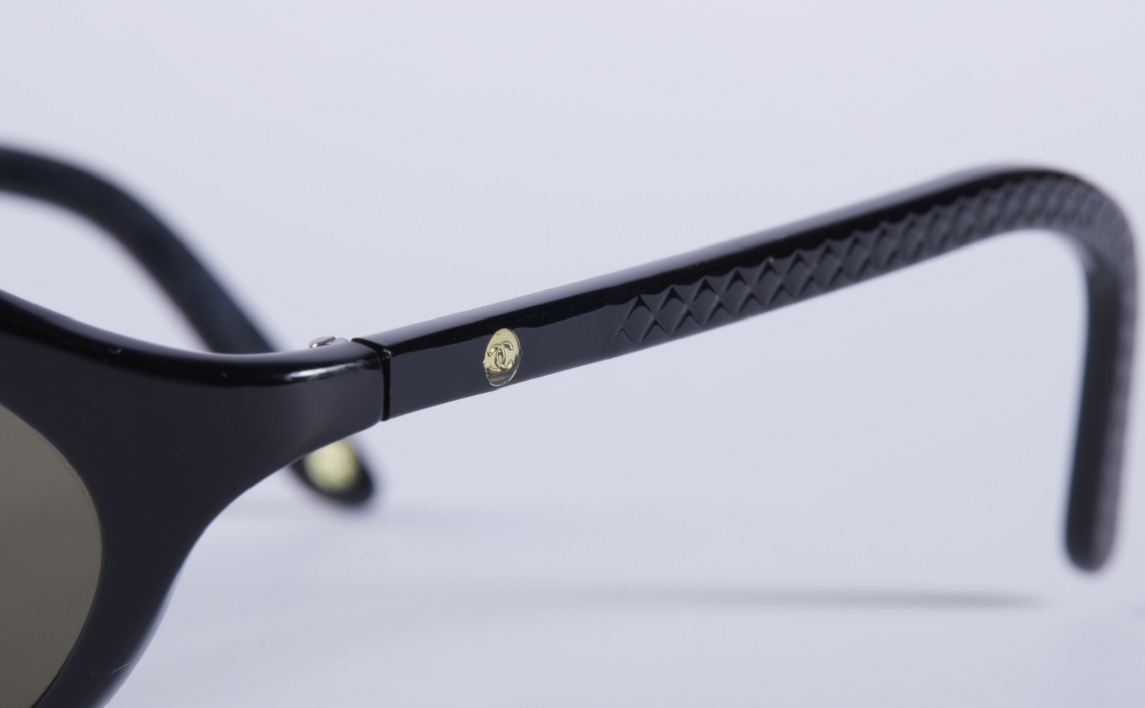 CHANEL Occhiali da sole. . . Occhiali da sole con montatura nera, logo a lato.