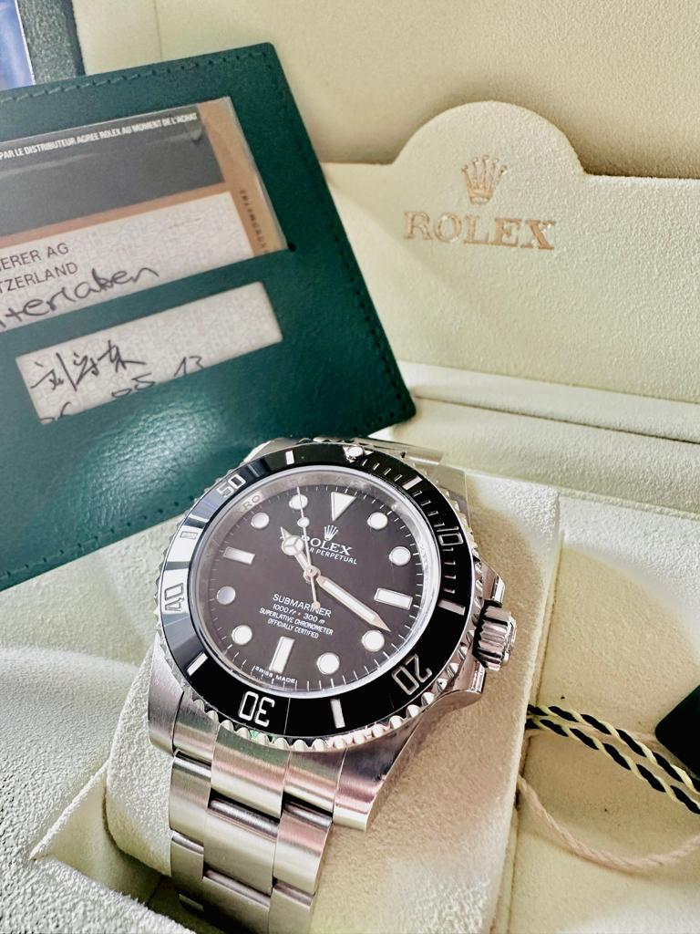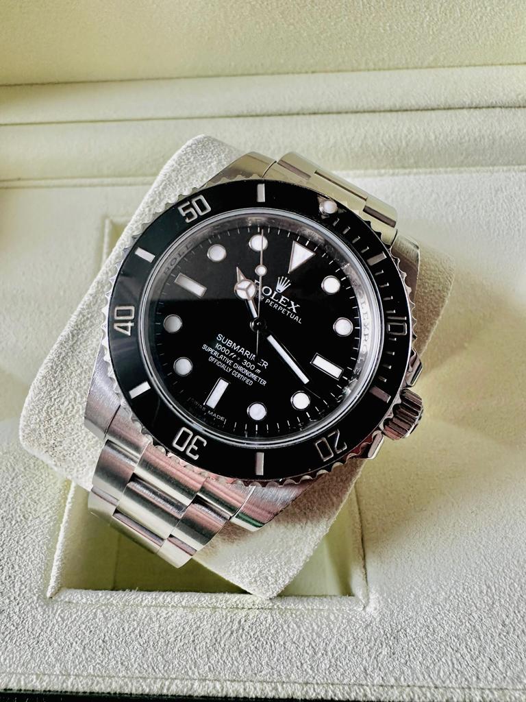 Marca Rolex Modello Submariner (No Date) Numero di referenza 114060 Carica Automatico Materiale della cassa Acciaio Materiale cinturino Acciaio Anno di produzione 2015/19 Corredo documenti originali, no box Calibro Carica Automatico Cassa Materiale della cassa Acciaio Diametro 40 mm Materiale lunetta Ceramica Vetro Vetro zaffiro Quadrante Nero Numeri sul quadrante Senza numeri Cinturino Materiale cinturino Acciaio Colore cinturino Acciaio Chiusura Déployante Materiale chiusura Acciaio