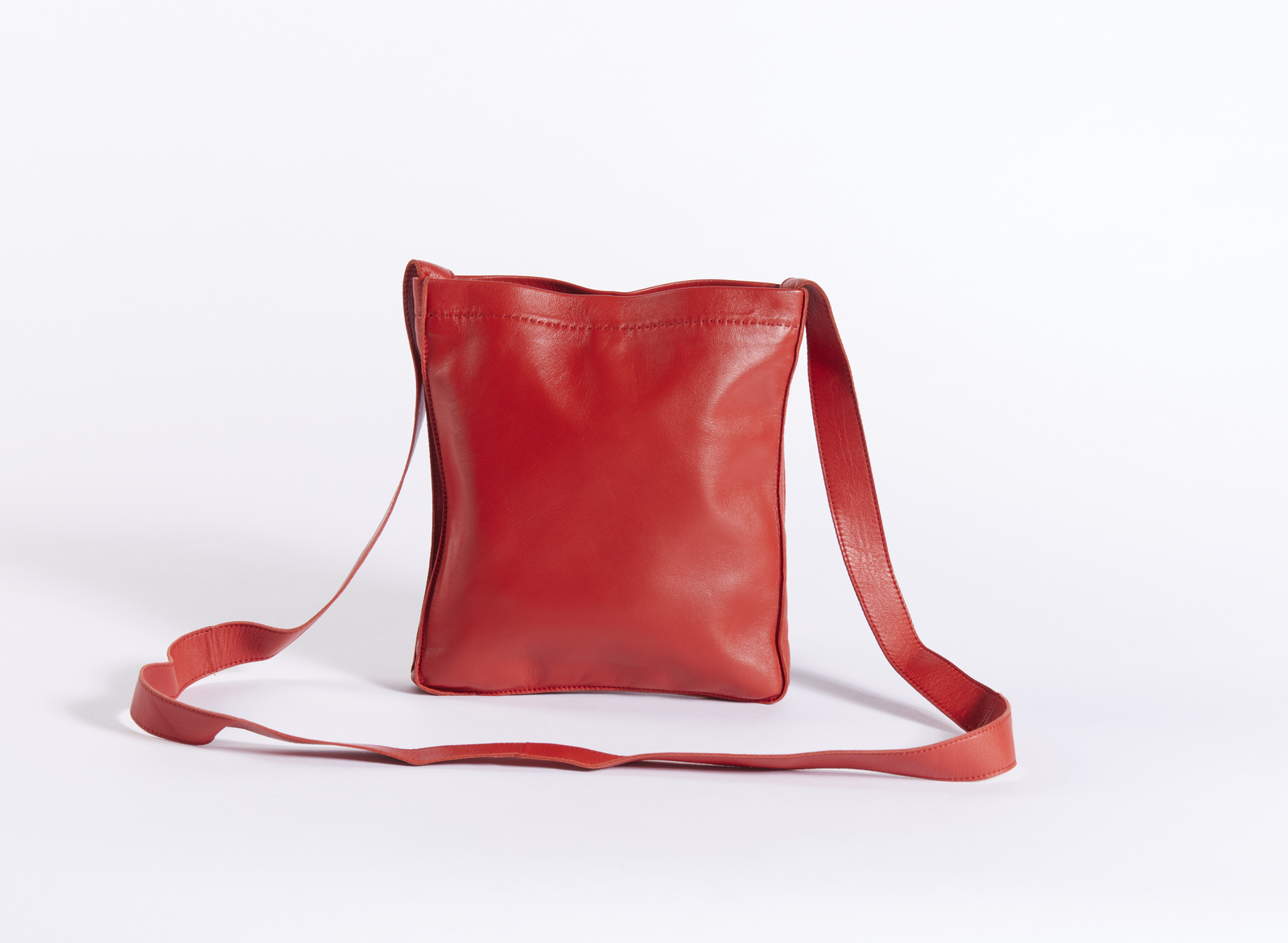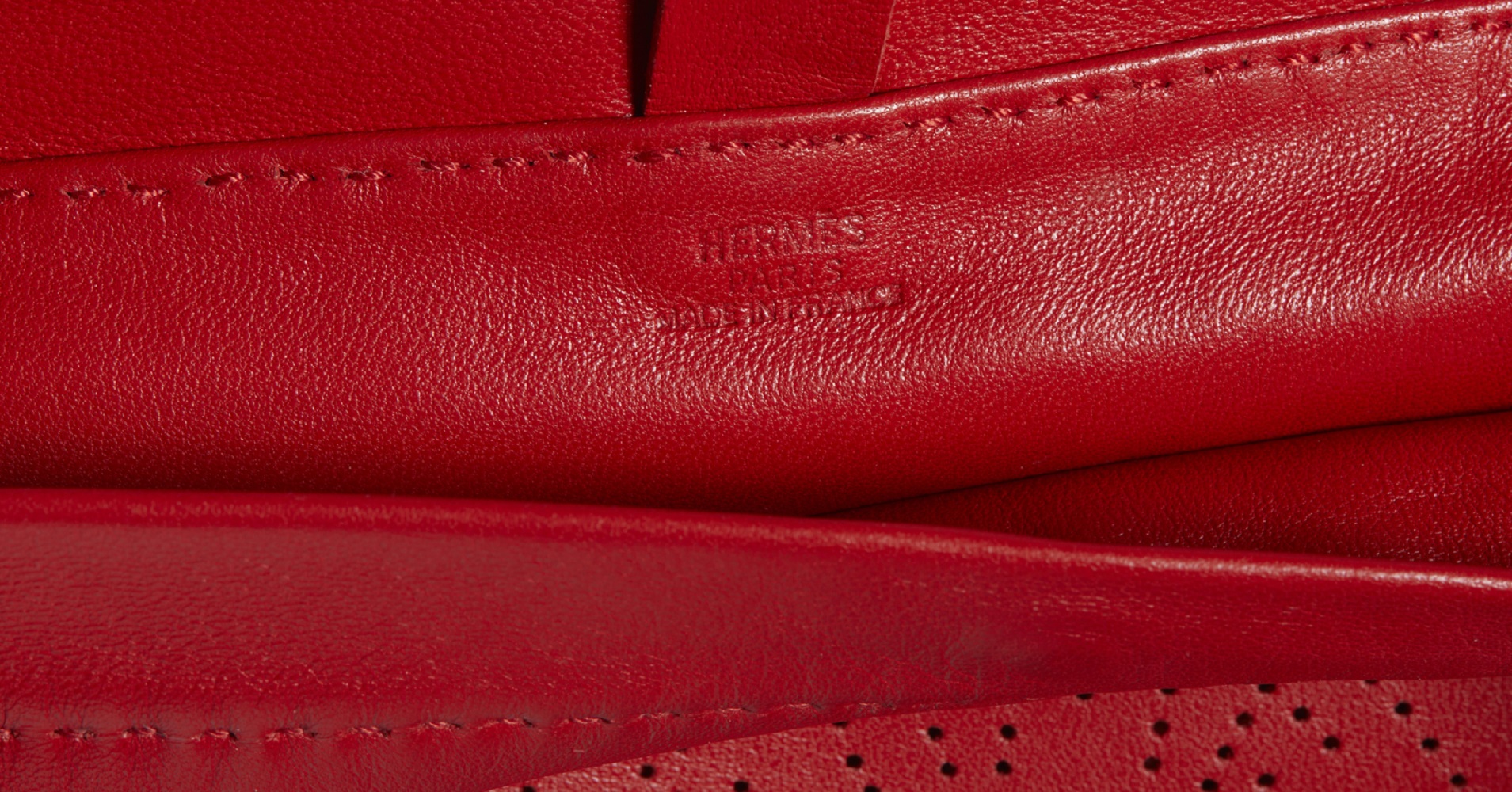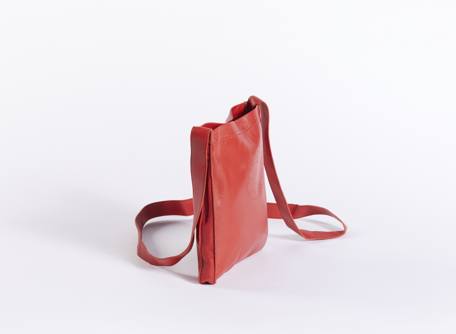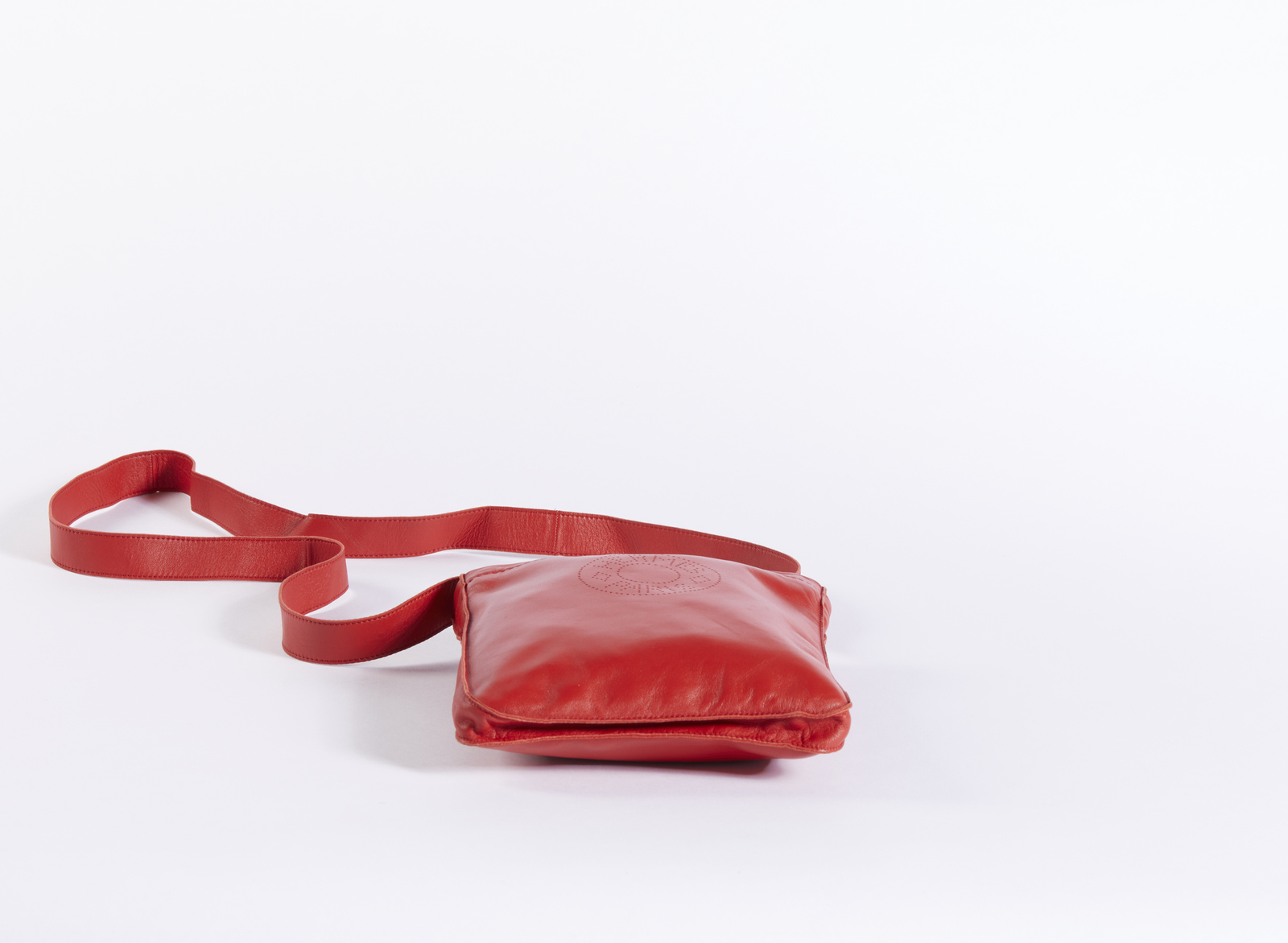 HERMES Borsa in pelle rossa. Pelle. Cm 18,00 x 22,00 x 2,00. Borsa in pelle con tracolla. Logo traforato sul fronte. Chiusura con bottone.