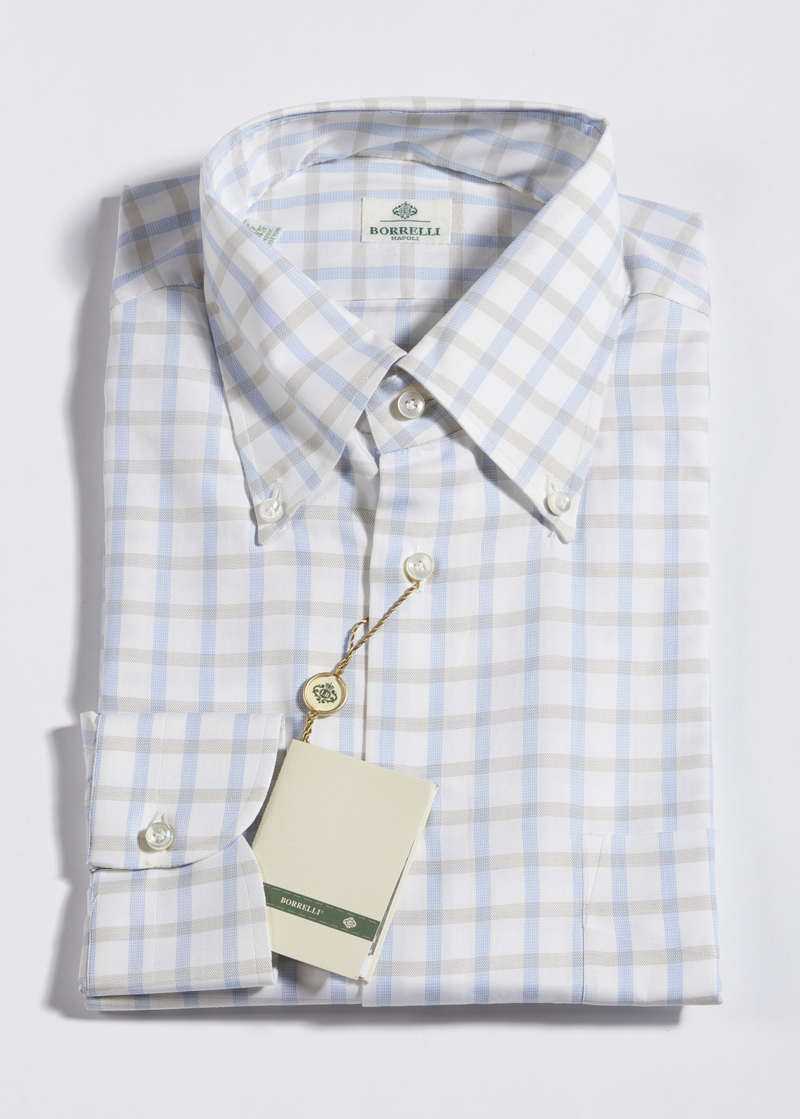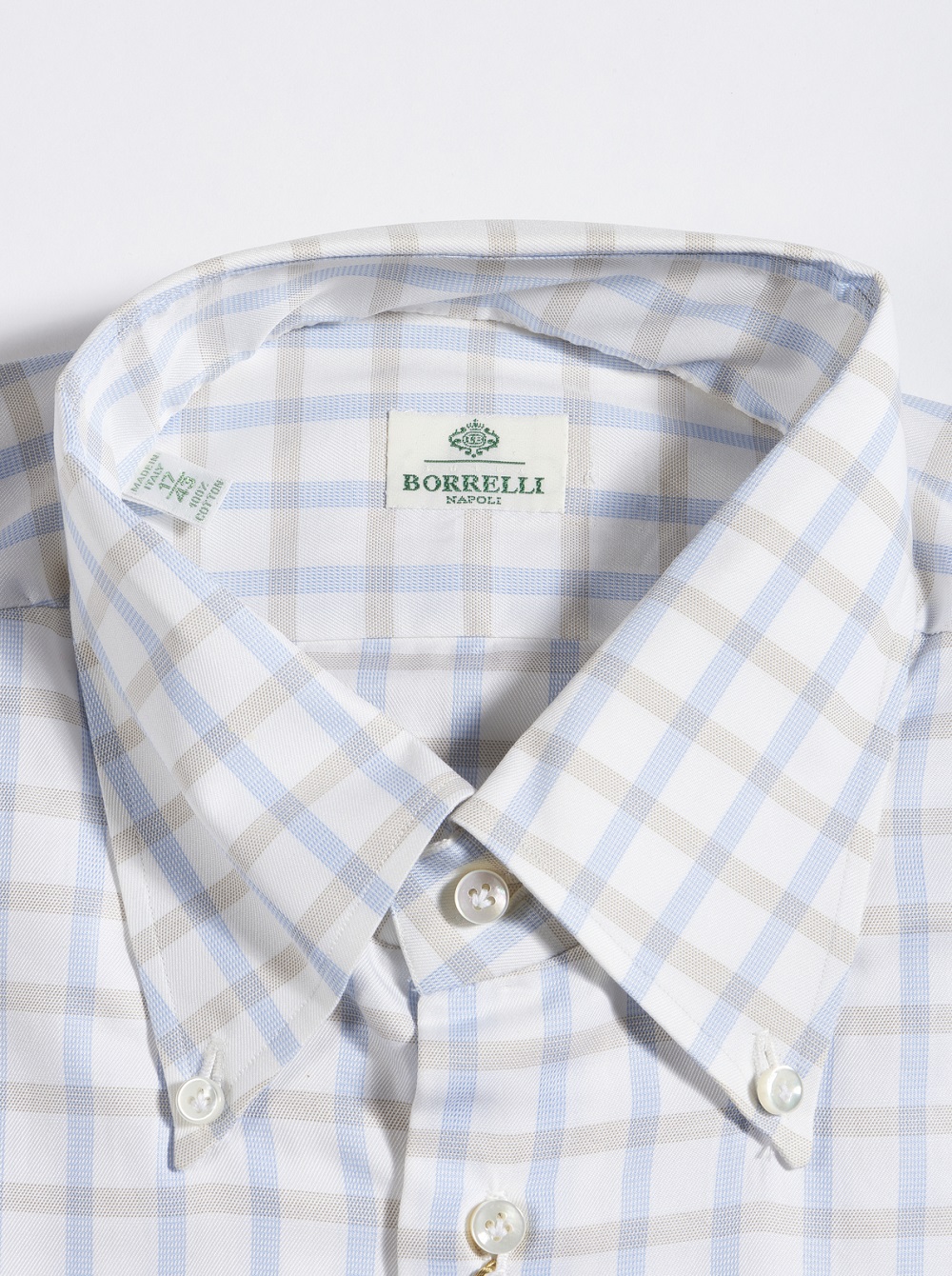 BORRELLI Camicia bianca con quadretti azzurri. . . Camicia a quadretti azzurri e marroni.