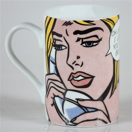 LICHTENSTEIN ROY (1923 - 1997) D'APRES. Oh jeff... I love you too... but... (1964). 2013. Ceramica. Cm 1,50 x 11,00 x 7,50. Tazza in ceramica riportante sul fondo il timbro della Estate of Roy Lichtenstein.