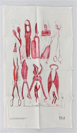 BOURGEOIS LOUISE (1911 - 2010) Untitled. 1986. Oggetto. Cm 70,00 x 50,00. Firma a stampa e data in basso a destra. Ink,Oil, Charcoal and Pencil on Paper. Tea Towel printed by Third Drawer Down for MOCA. Confezione originale firmata a stampa. Cornice presente