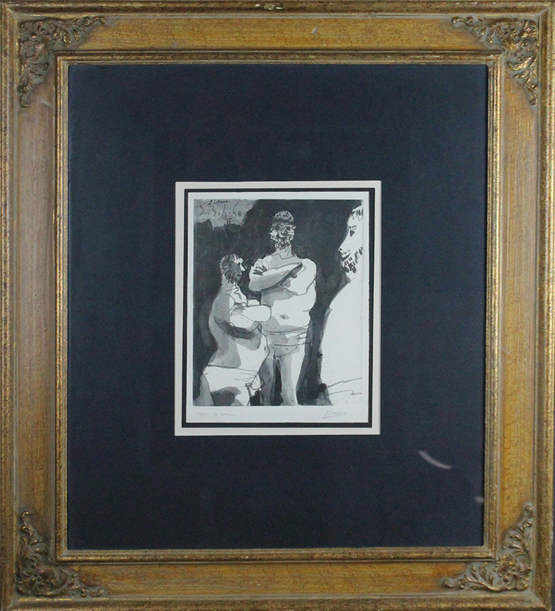 PABLO PICASSO, Anni '60, Incisione su cartoncino, Esemplare 123/160, dim 30x24, Al fronte: firmato in basso a destra, Esemplare, titolo in basso a sinistra, Firma e data in alto a sinistra, Opera con cornice
