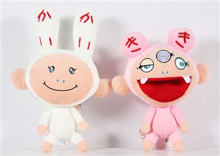 MURAKAMI TAKASHI (n. 1962) Kaikai kiki. 2002. Oggetto. Cm 20,00 x 29,00 x 10,00. Riproduzione in stoffa dei personaggi Kaikai Kiki. All rights reserved.