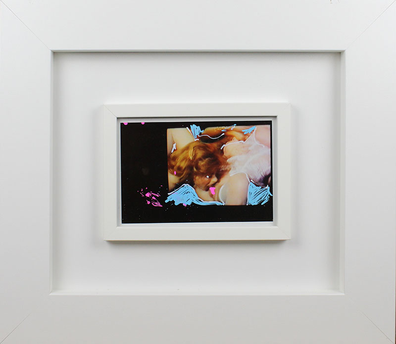MARIO SCHIFANO, Erotika, 1990-97, Foto ritoccata a smalto, Esemplare unico, Dim. 10x15, Opera archiviata presso la Fondazione Mario Schifano " Archivio Generale dell' Opere di Mario Schifano " con n° archivio: F90-97/7463, il 24 ottobre 2007, Opera pubblicata sul catalogo " Mario Schifano fotografie ritoccate " a pag.171, volume I, Al verso: firma "Schifano", Opera con cornice