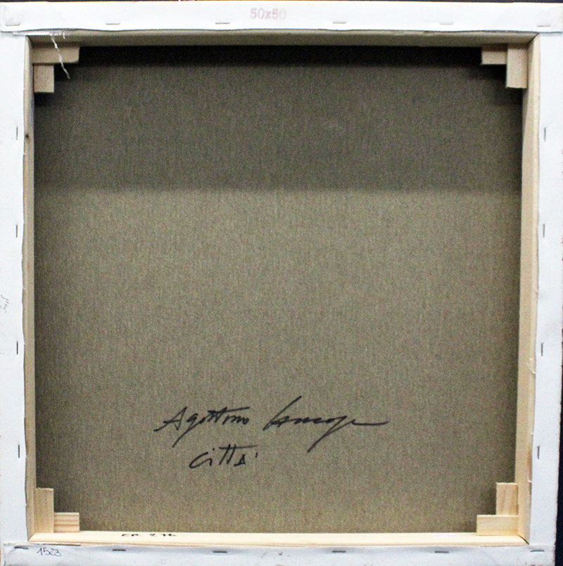 AGOSTINO CANCOGNI, "Città", anni 2000, olio su tela, 50x50, Al verso: firma e titolo