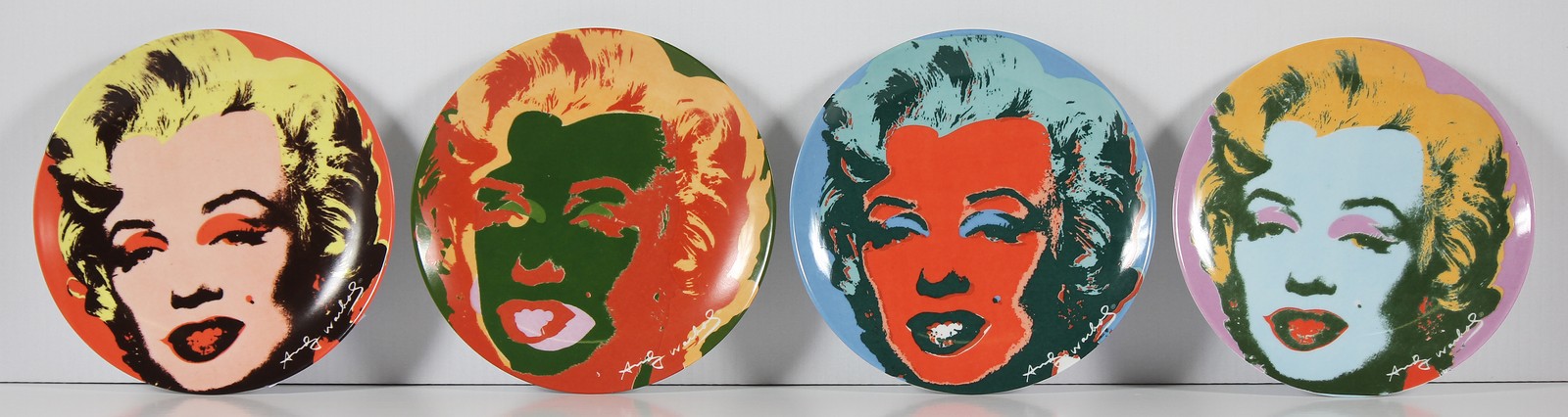WARHOL ANDY (1928 - 1987) Lotto composto da n.4 piatti. Marilyn Monroe. 1997. Ceramica. . Block edition. Firma a stampa al retro e al fronte.