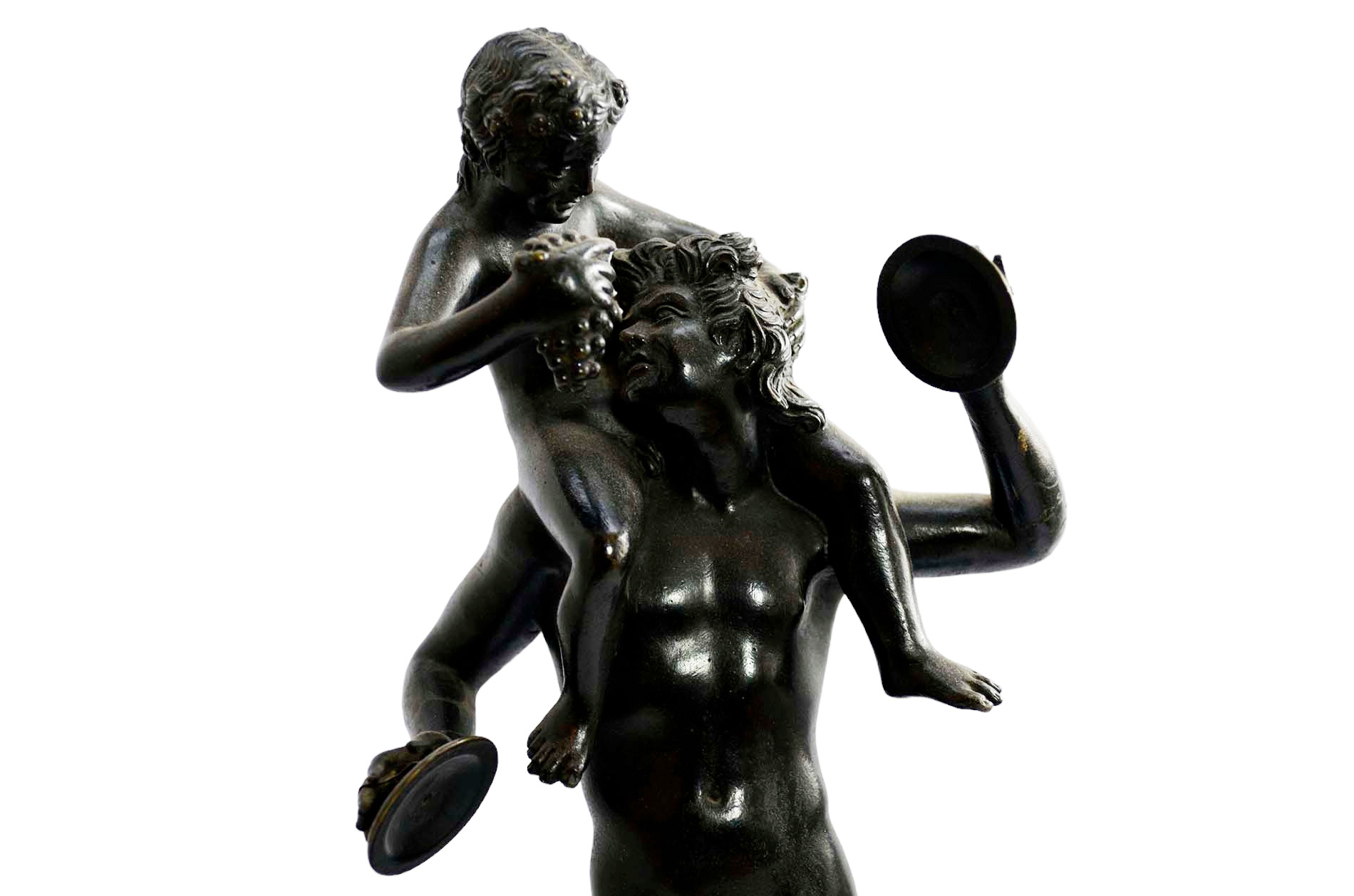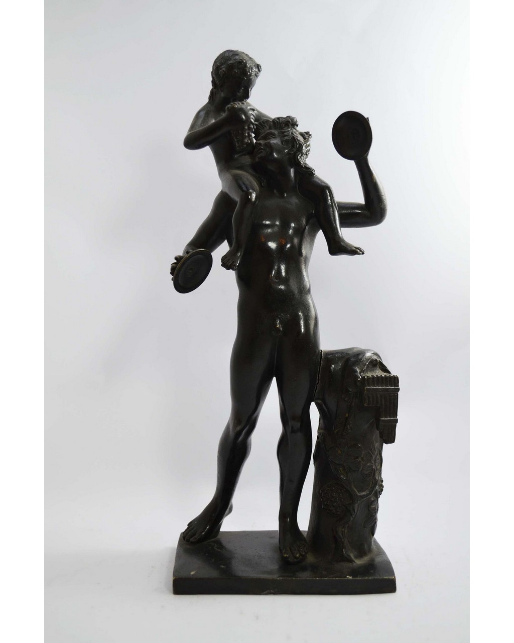 GRUPPO in bronzo patinato raffigurante Dio Pan con Dioniso Italia primi 800 h cm 28 x 17 x 6