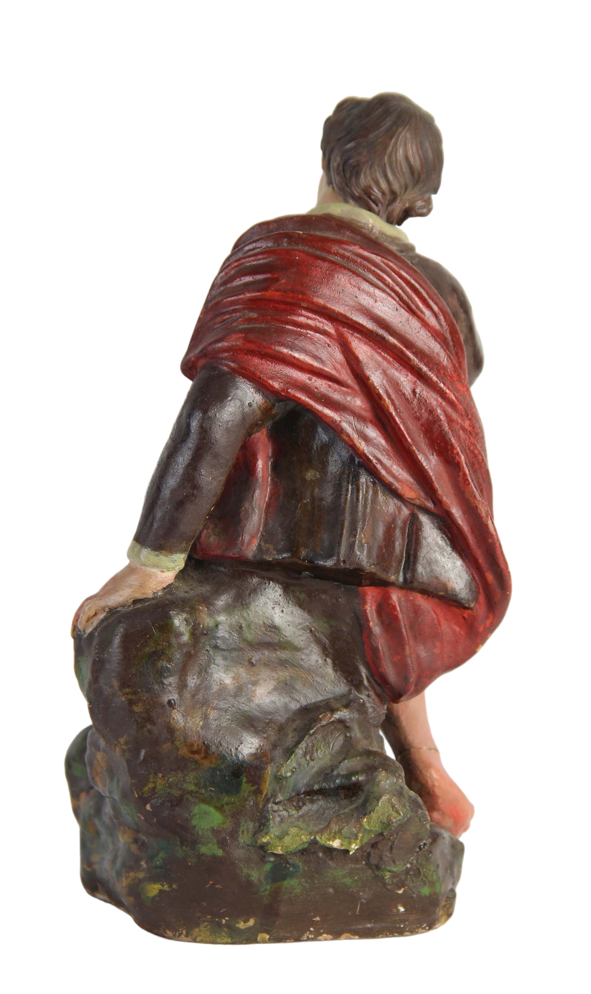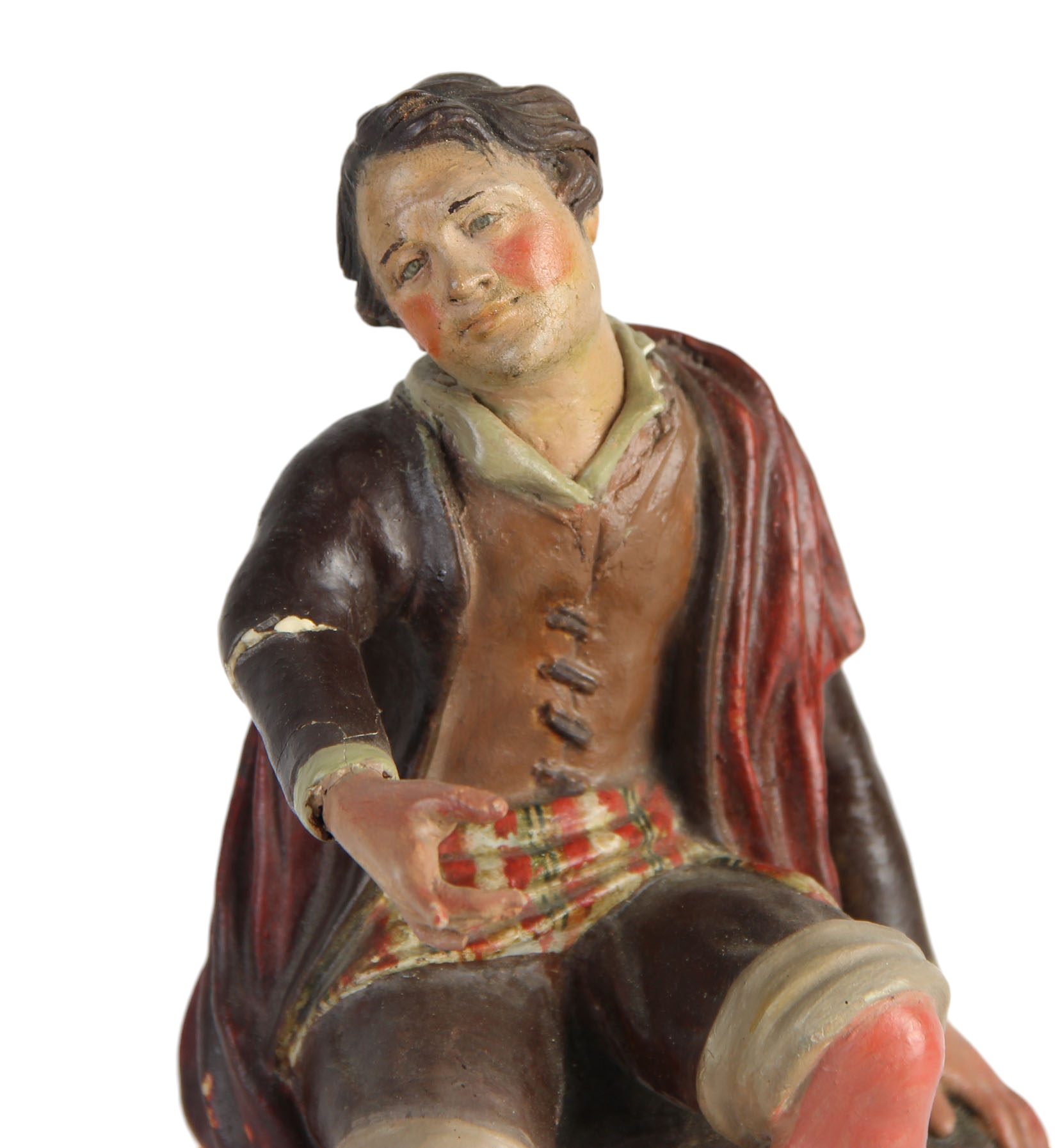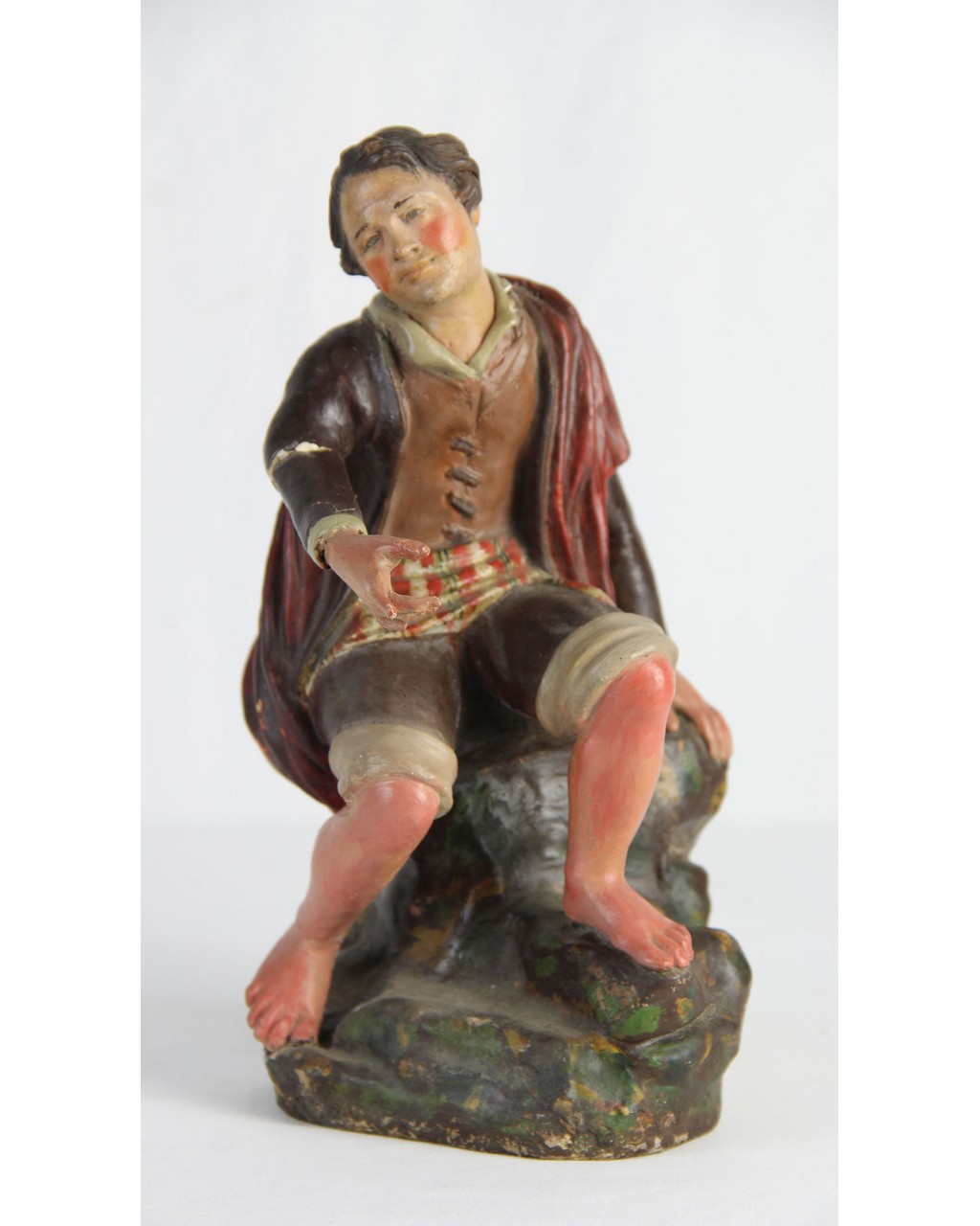 FIGURA ACCADEMICA DA PRESEPE in terracotta policroma raffigurante giovane seduto su una roccia Napoli XVIII secolo h cm 23