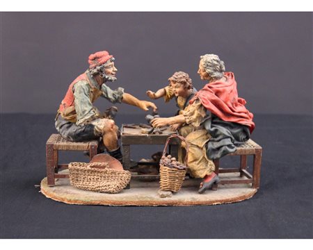 GRUPPO SCULTOREO in cartapesta policroma raffigurante scena di vita con personaggi maestranze siciliane XVIII / XIX secolo h cm 16 x 28 x 13