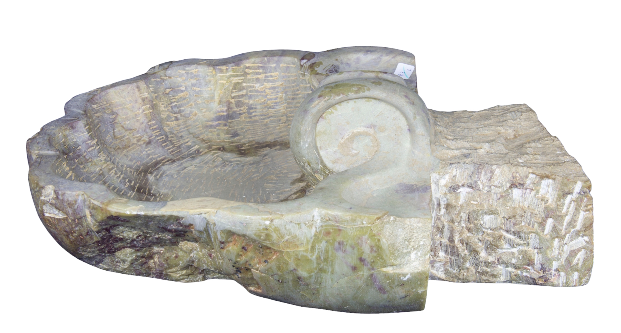 VASCA in marmo breccia francese scolpita a forma di conchiglia Sicilia XIX secolo h cm 14 x 33 x 38