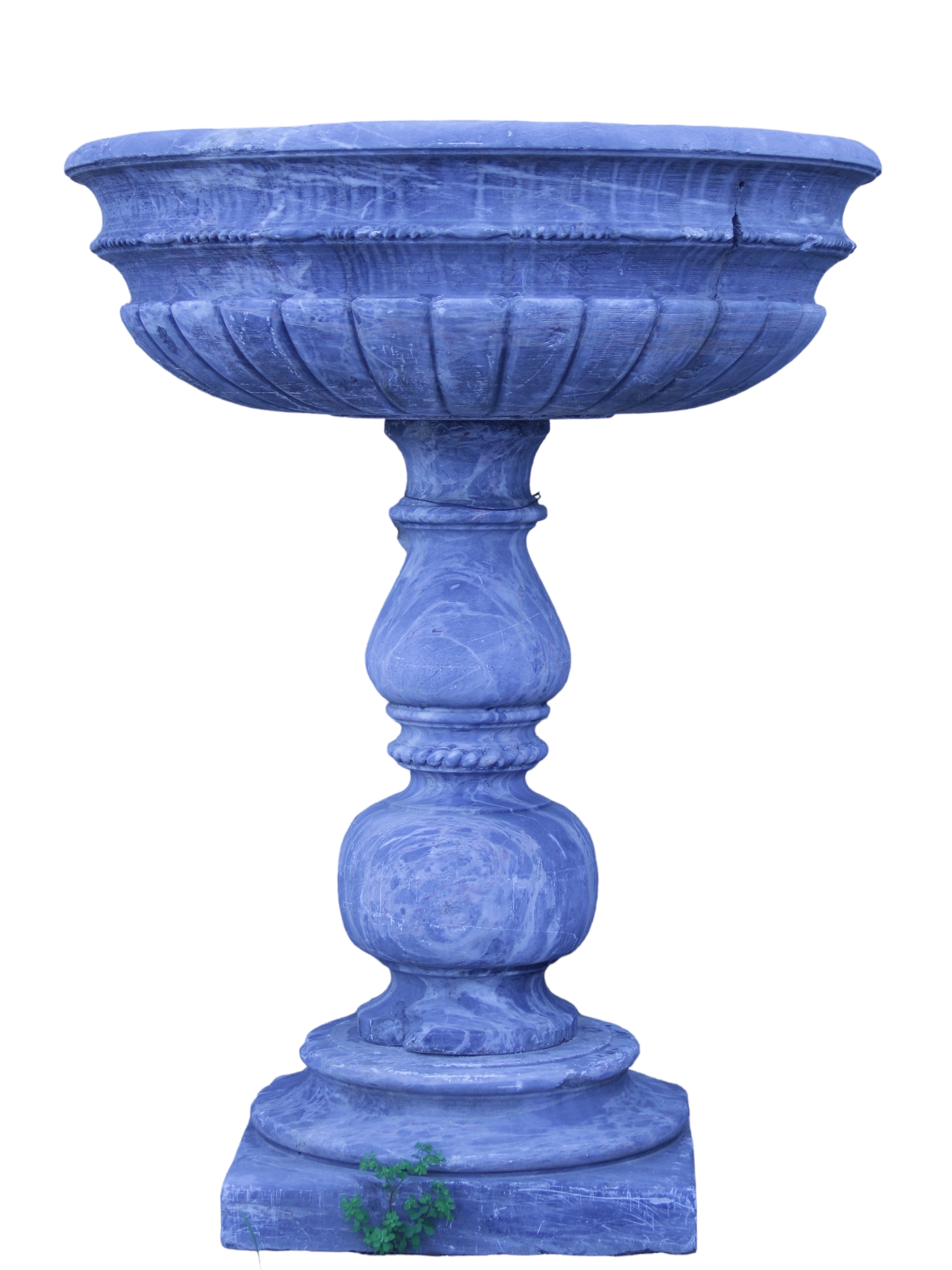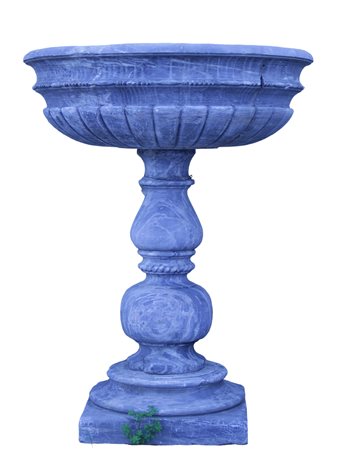 VASCA CIRCOLARE in marmo grigio di Billiemi, conca scolpita e cordonata sorretta da fusto di forma piriforme e sferico, poggia di base gradinata XIX secolo Sicilia h cm 118 x Ø 89