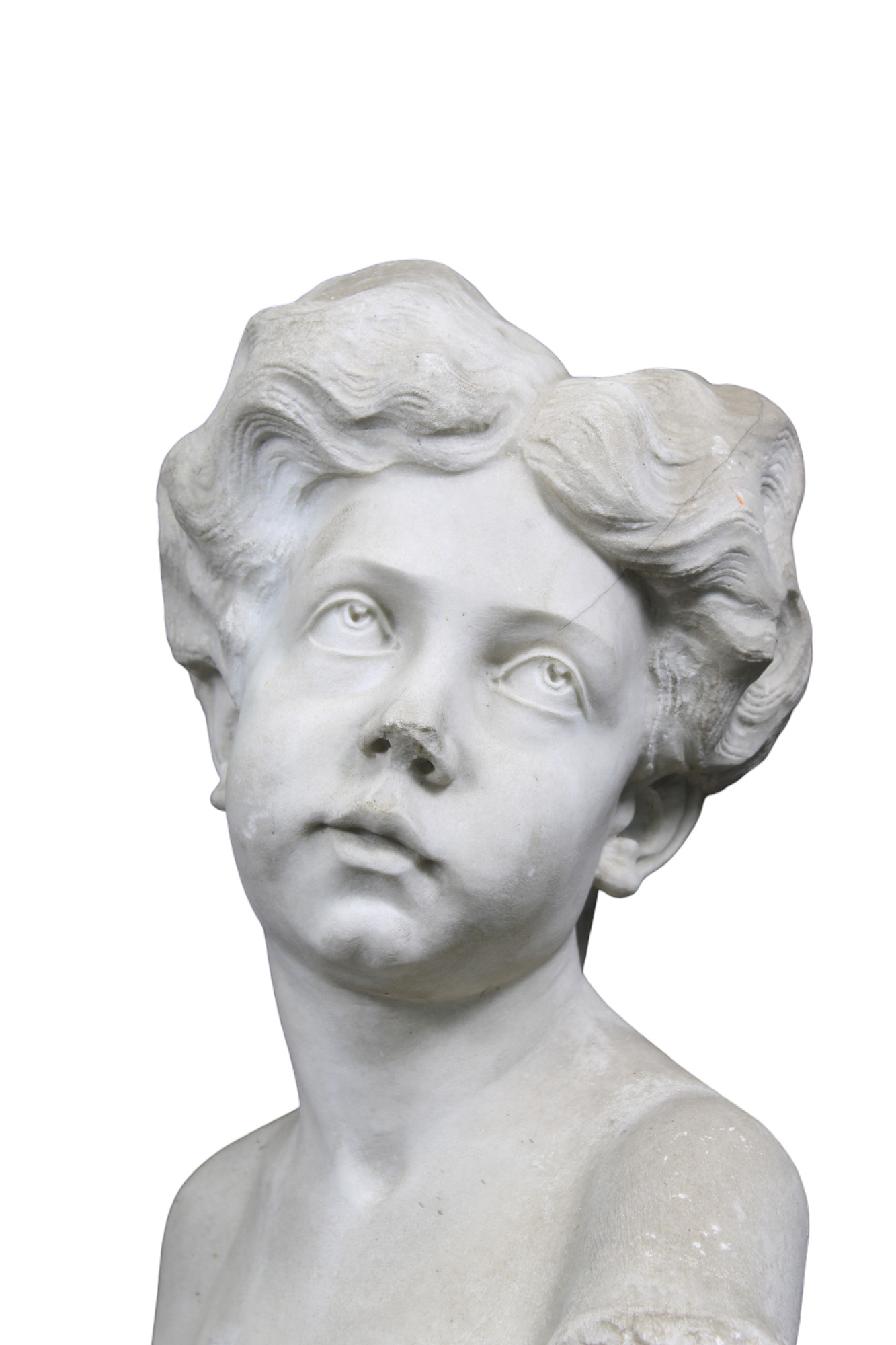 SCULTURA in marmo bianco di Carrara raffigurante mezzo busto di fanciullo, sulla base posteriore reca monogramma non decifrabile maestranze italiane XIX/XX secolo h cm 62 x 38 x 29