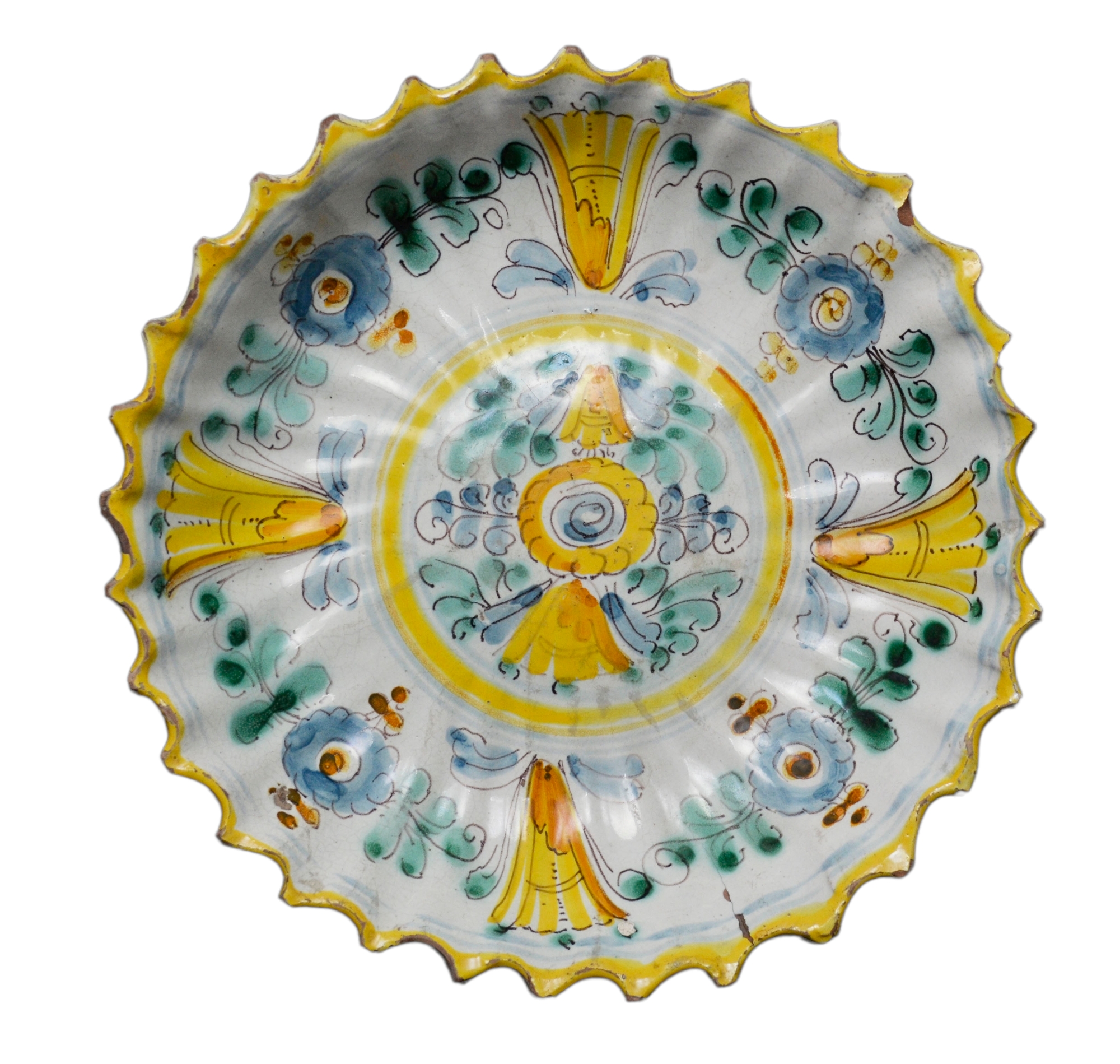 ALZATINA in maiolica policroma decorata a motivi floreali Montelupo XVIII secolo h cm 5,5 X Ø 25