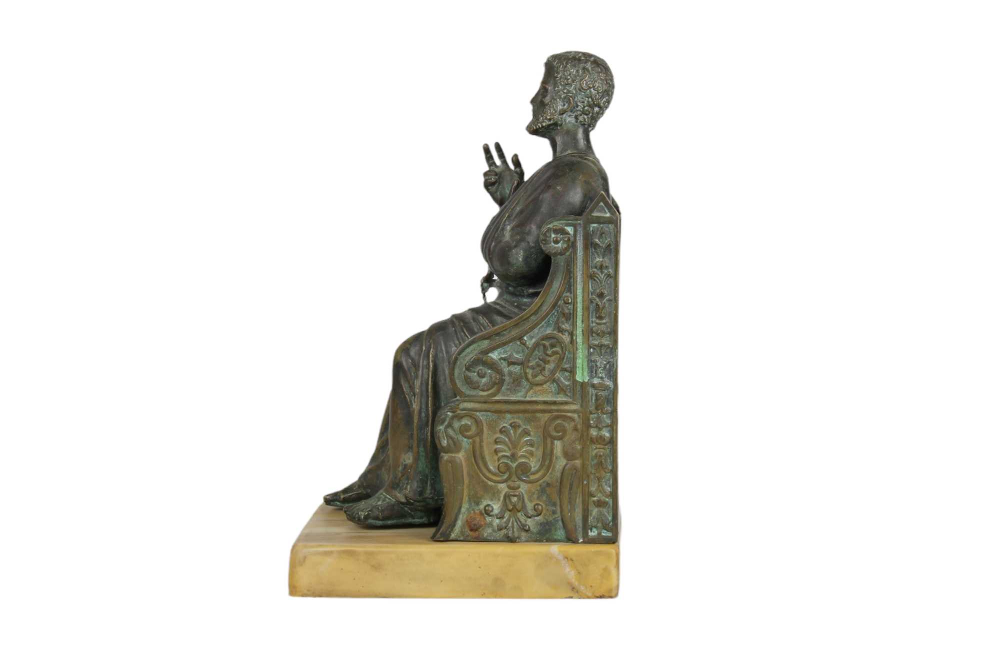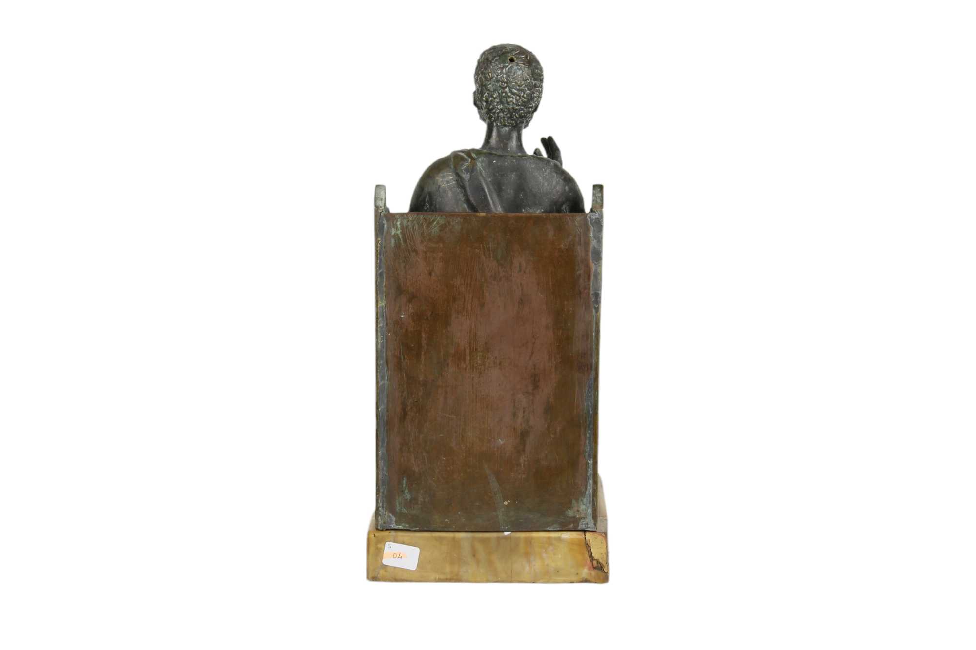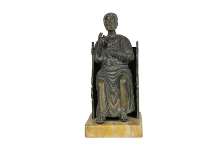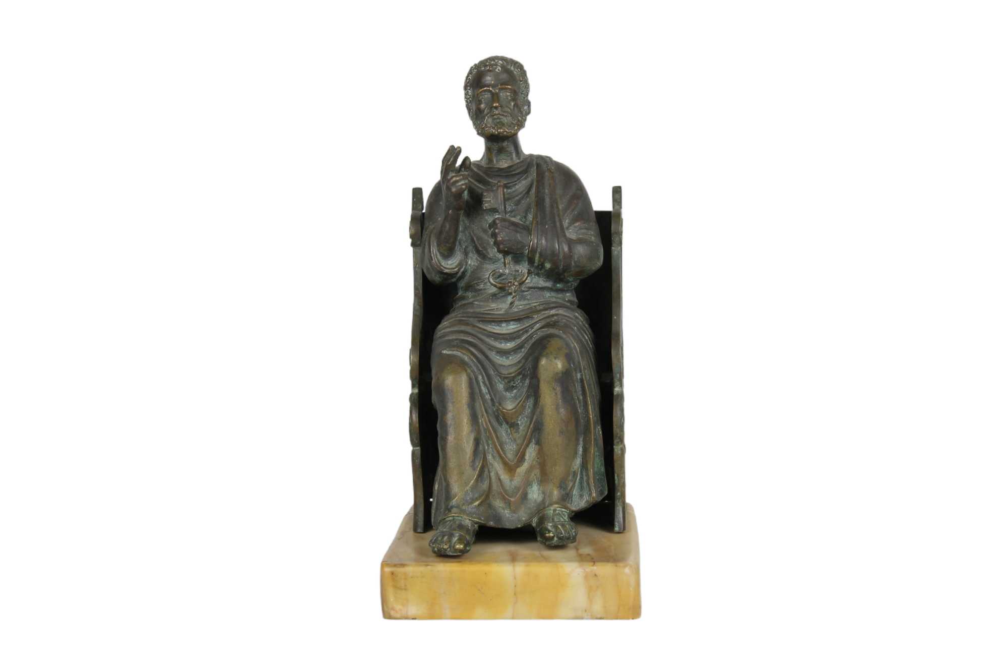 SCULTURA in bronzo patinato raffigurante San. Pietro base in marmo giallo di Siena manifattura italiana periodo Gran Tour Roma XIX secolo h cm 33 x 15 x 20