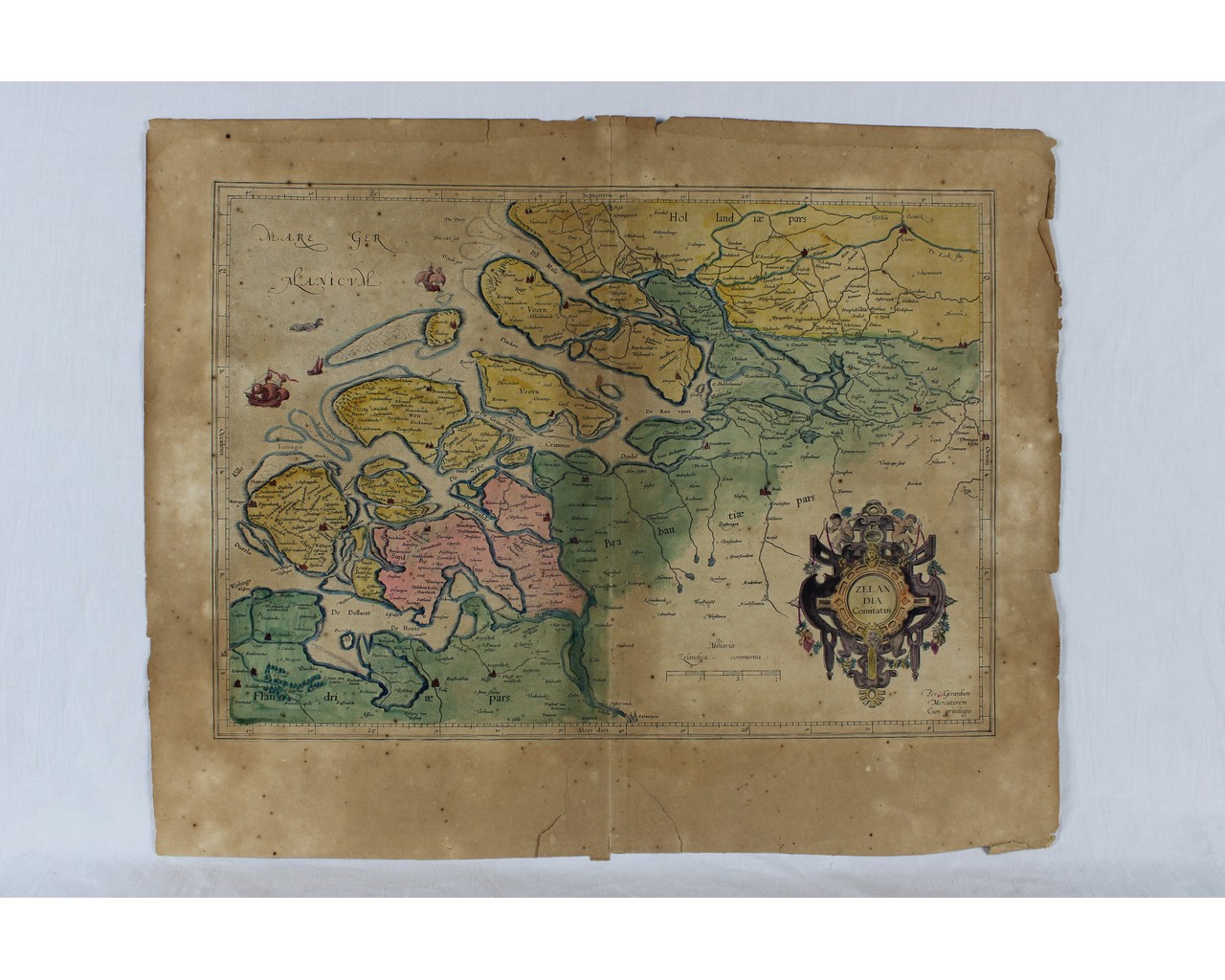 CARTINA GEOGRAFICA SURMONIO jacopo Montano ORTELIUS abraham (1527-1598) (Belgio) Nobilis Hannoniae Comitatus descriptio.. (Anversa 1571). Titolo entro cartiglio in alto e destra. Inc. rame h cm 46 x 56