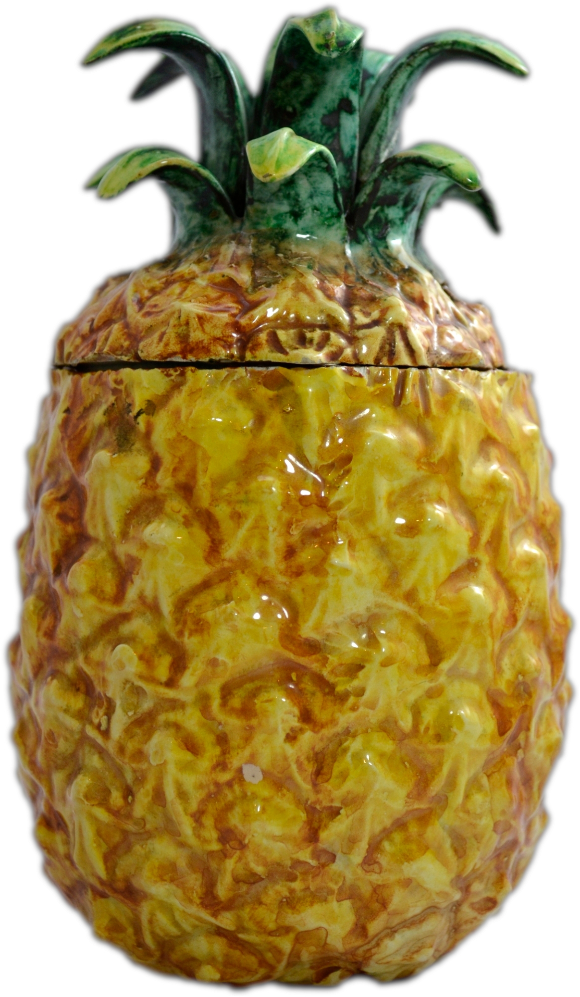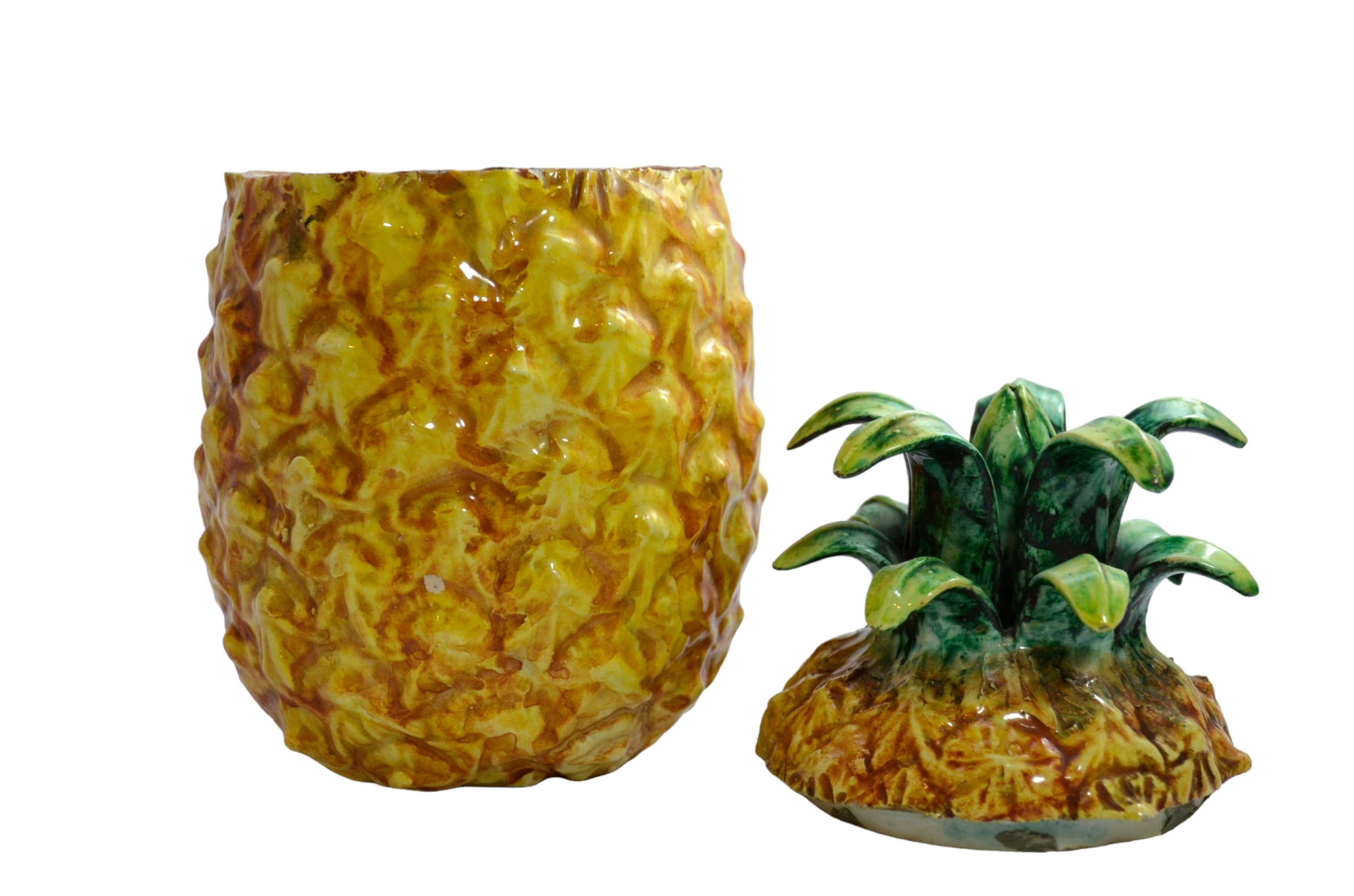 CONTENITORE in maiolica invetriata e dipinta manifattura italiana 1860-1910 h cm 20 x Ø 12