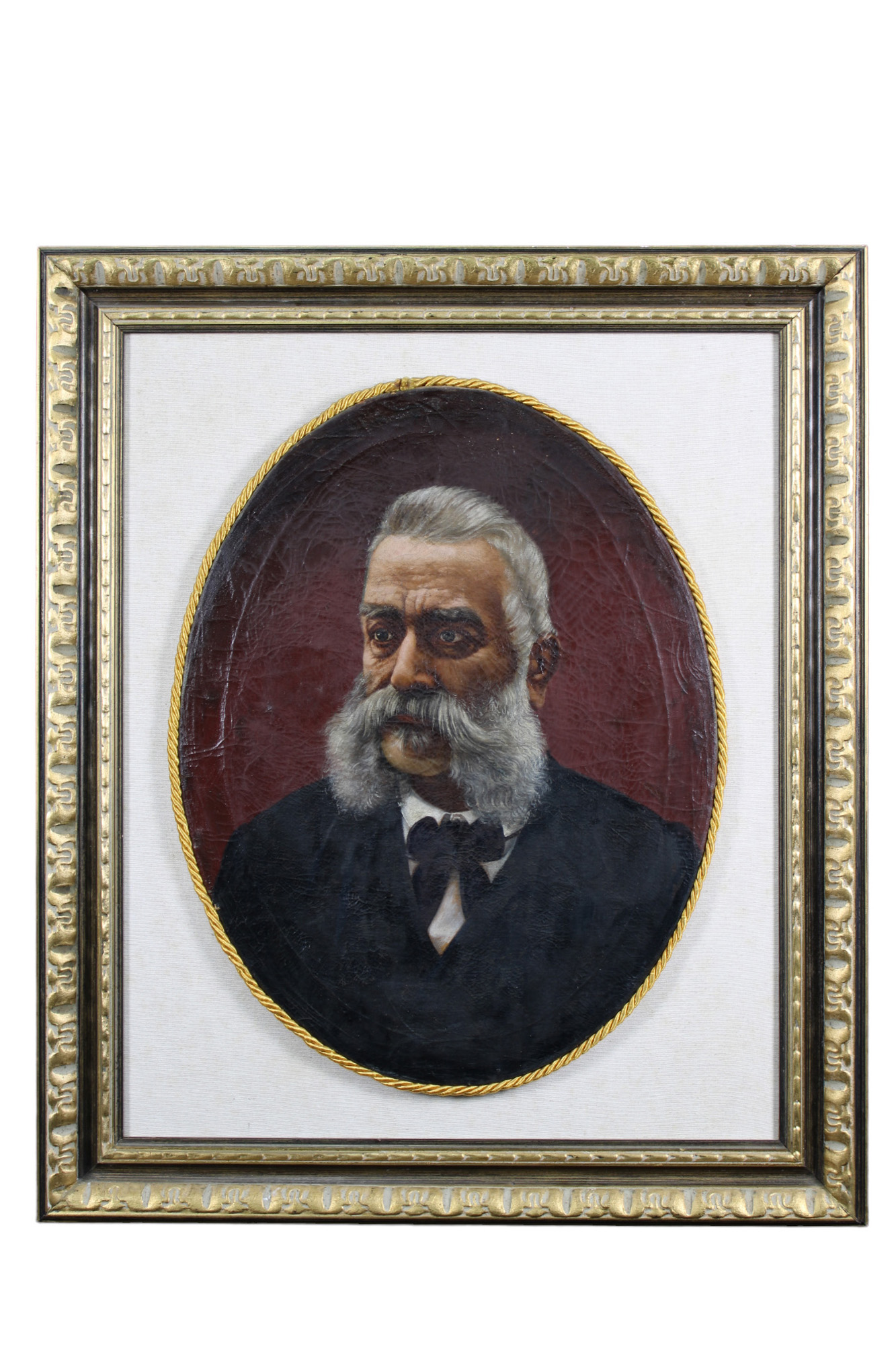 OLIO SU TELA DI FORMA OVALE raffigurante ritratto di gentiluomo, dentro cornice non coeva scuola italiana XIX secolo h cm 65 x 50