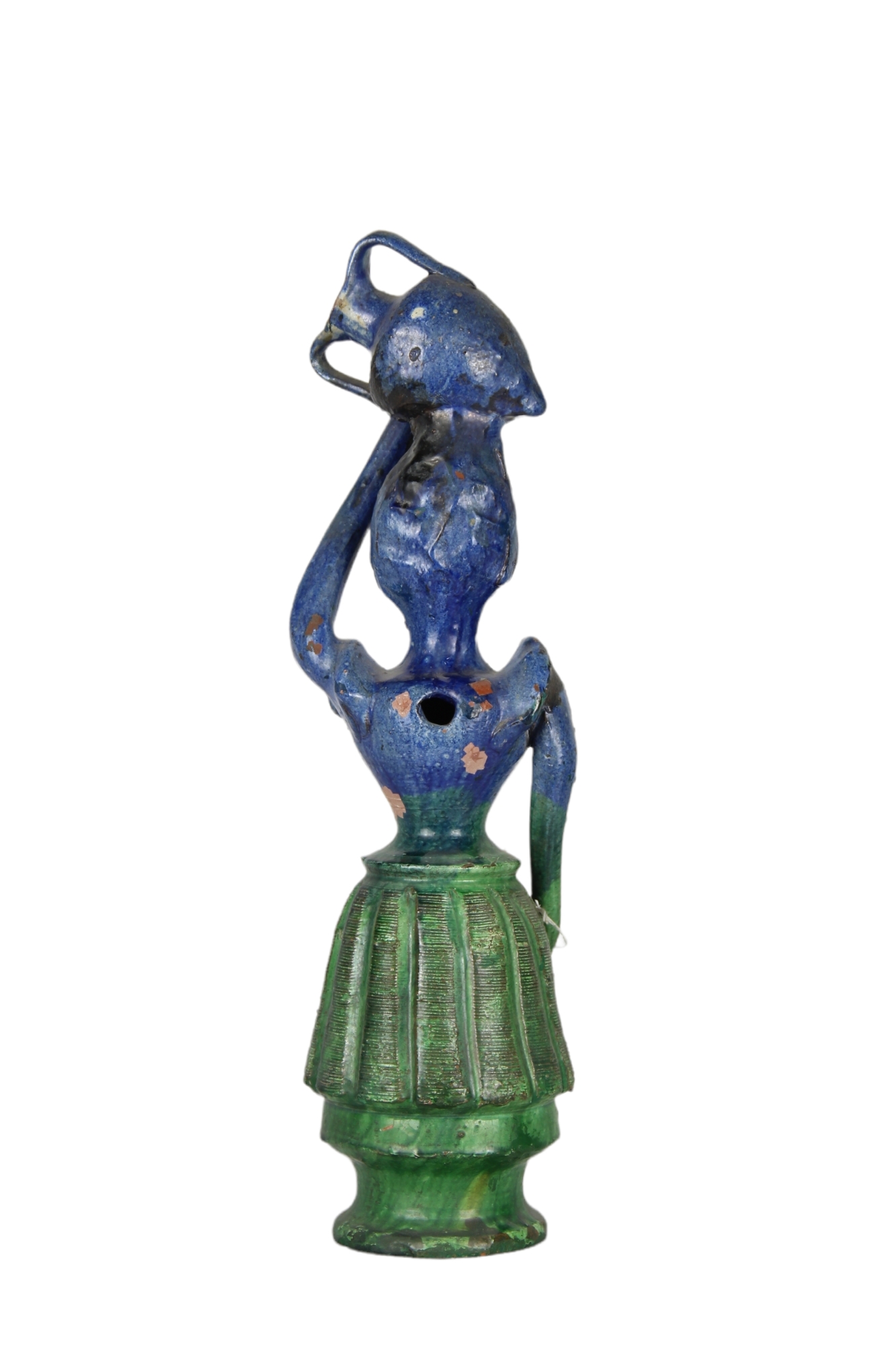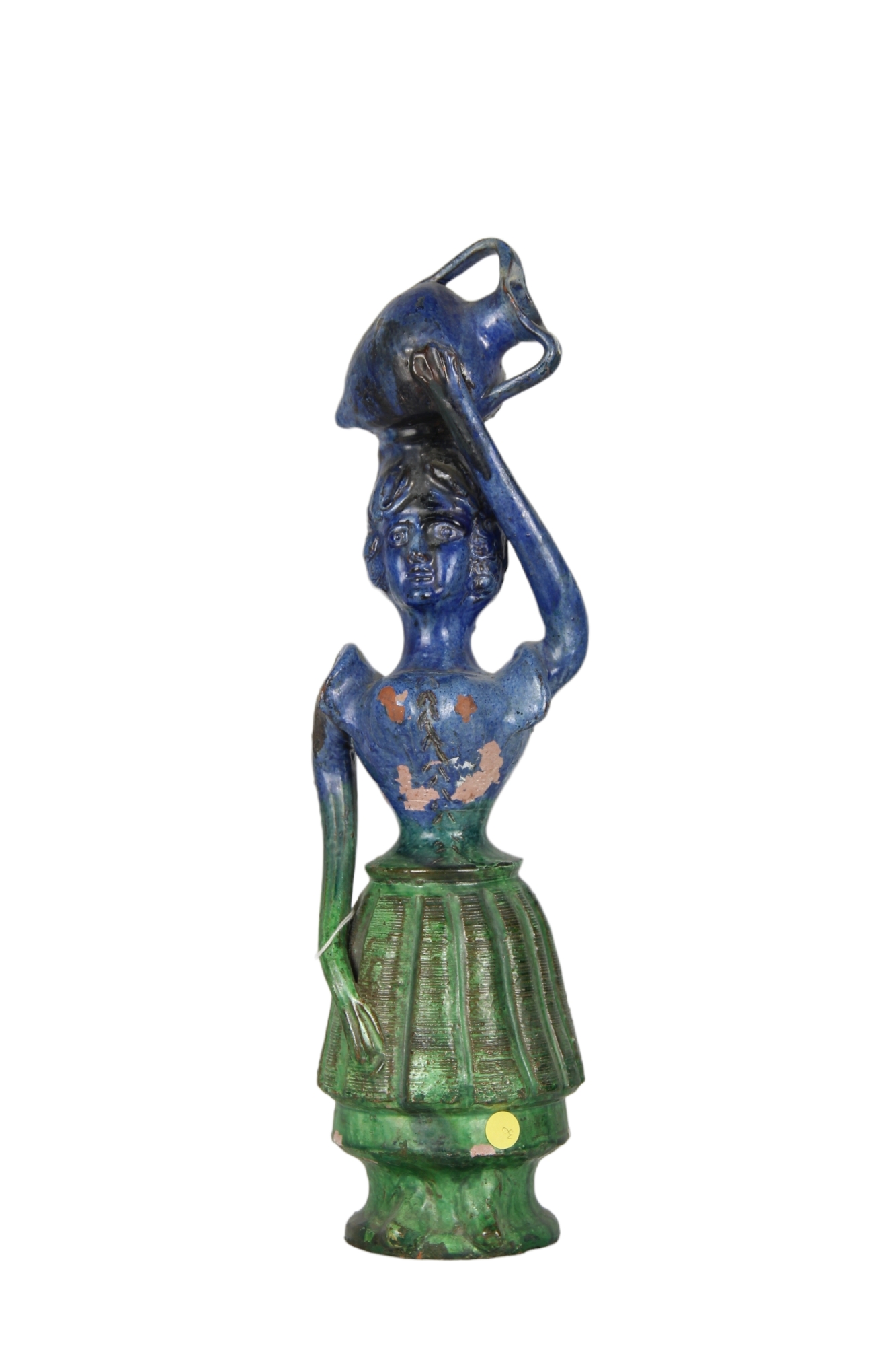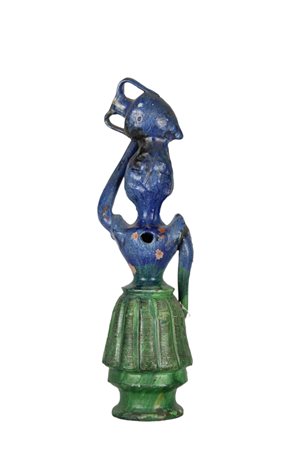 LUCERNA in maiolica policroma raffigurante Acquaiola Caltagirone XVIII secolo h cm 49,5 x 14