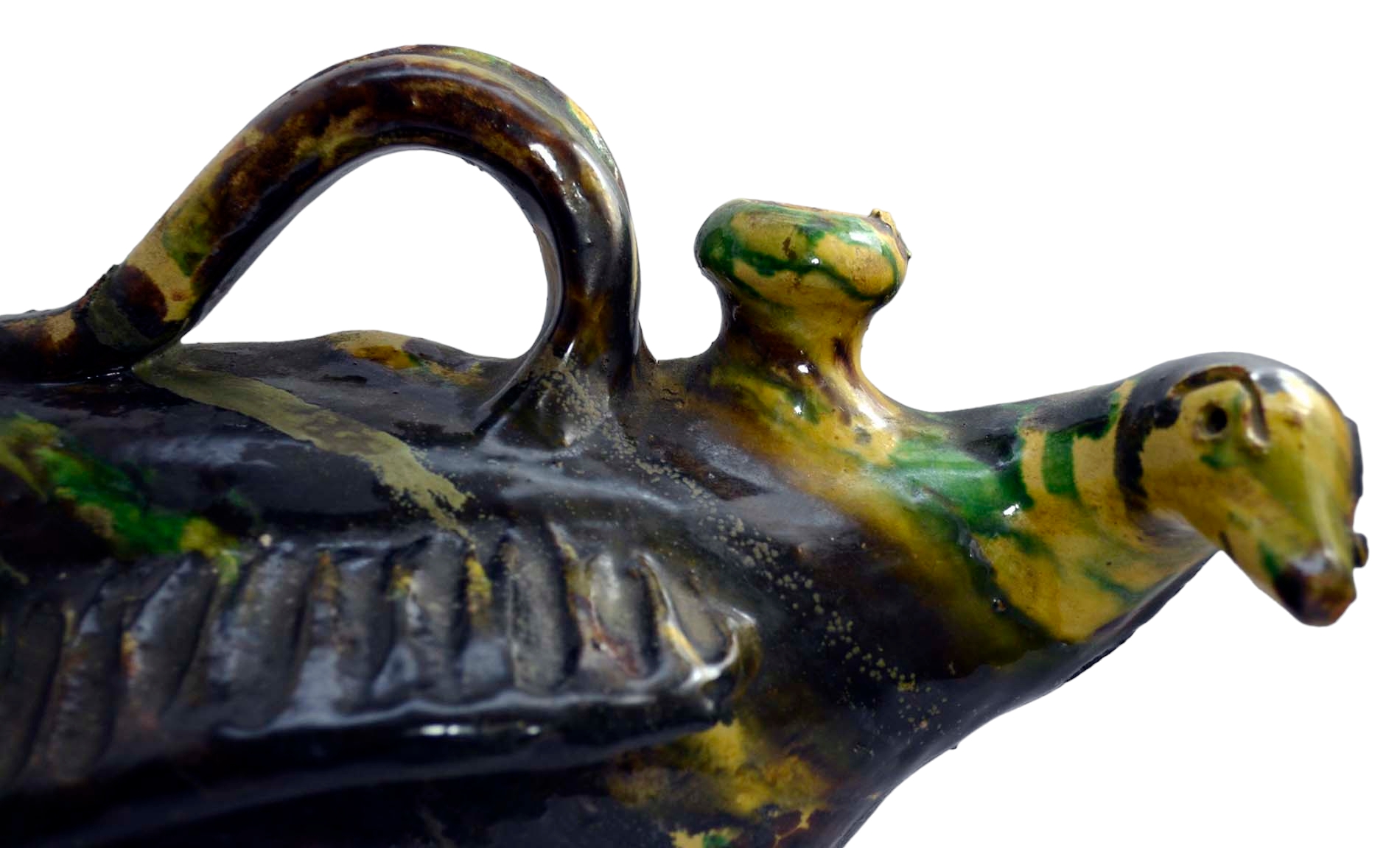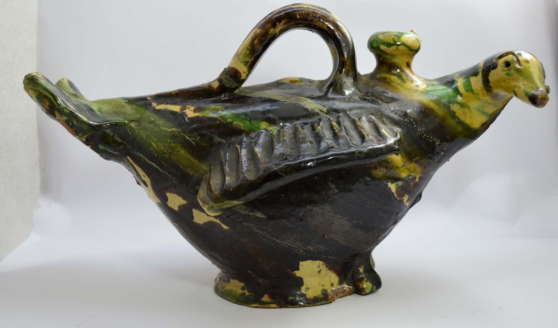 SCALDAMANI in maiolica policroma , raffigurante volatile Burgio, Sicilia primi 800 h cm 20 x 33 x 17,5