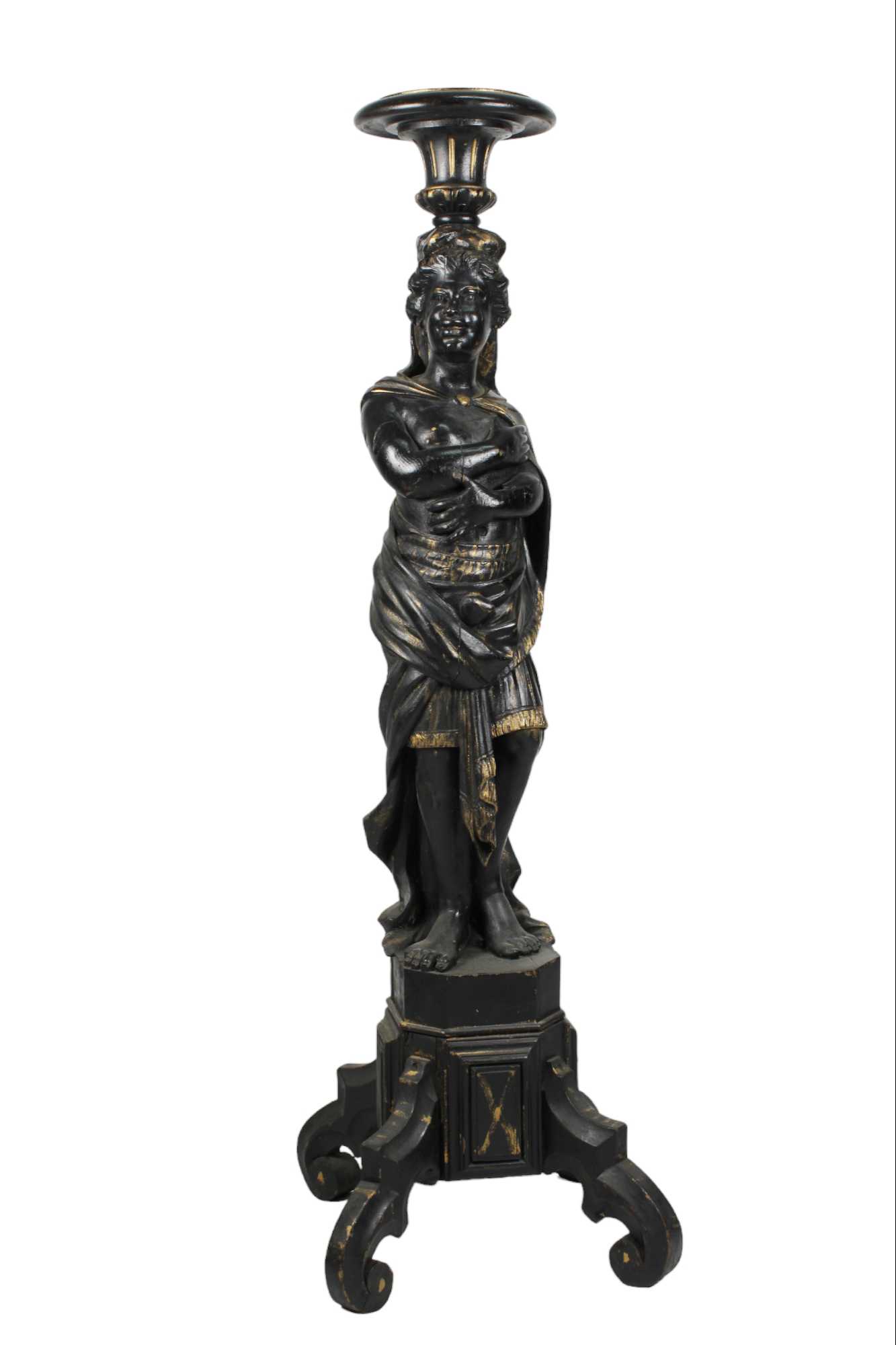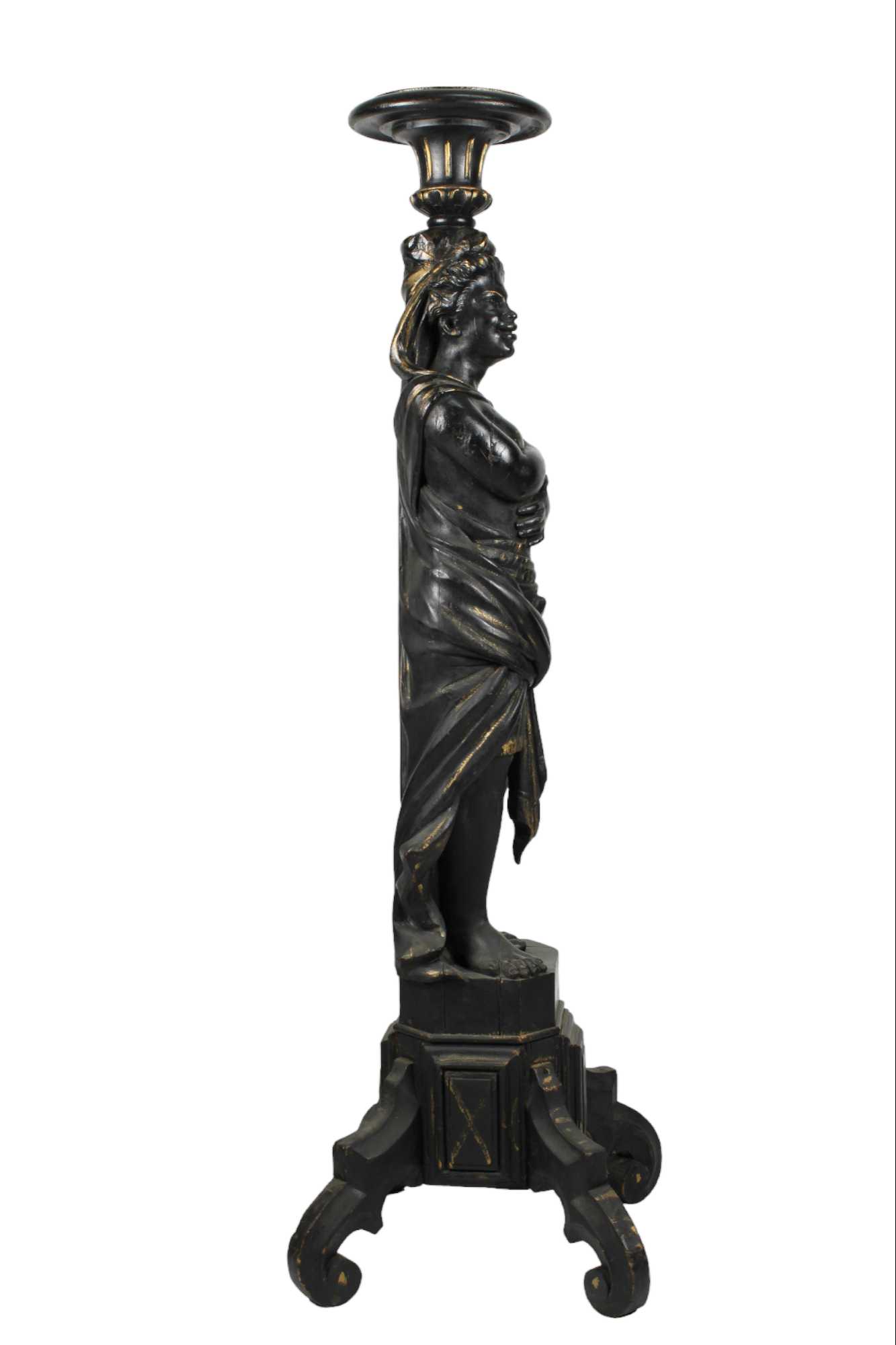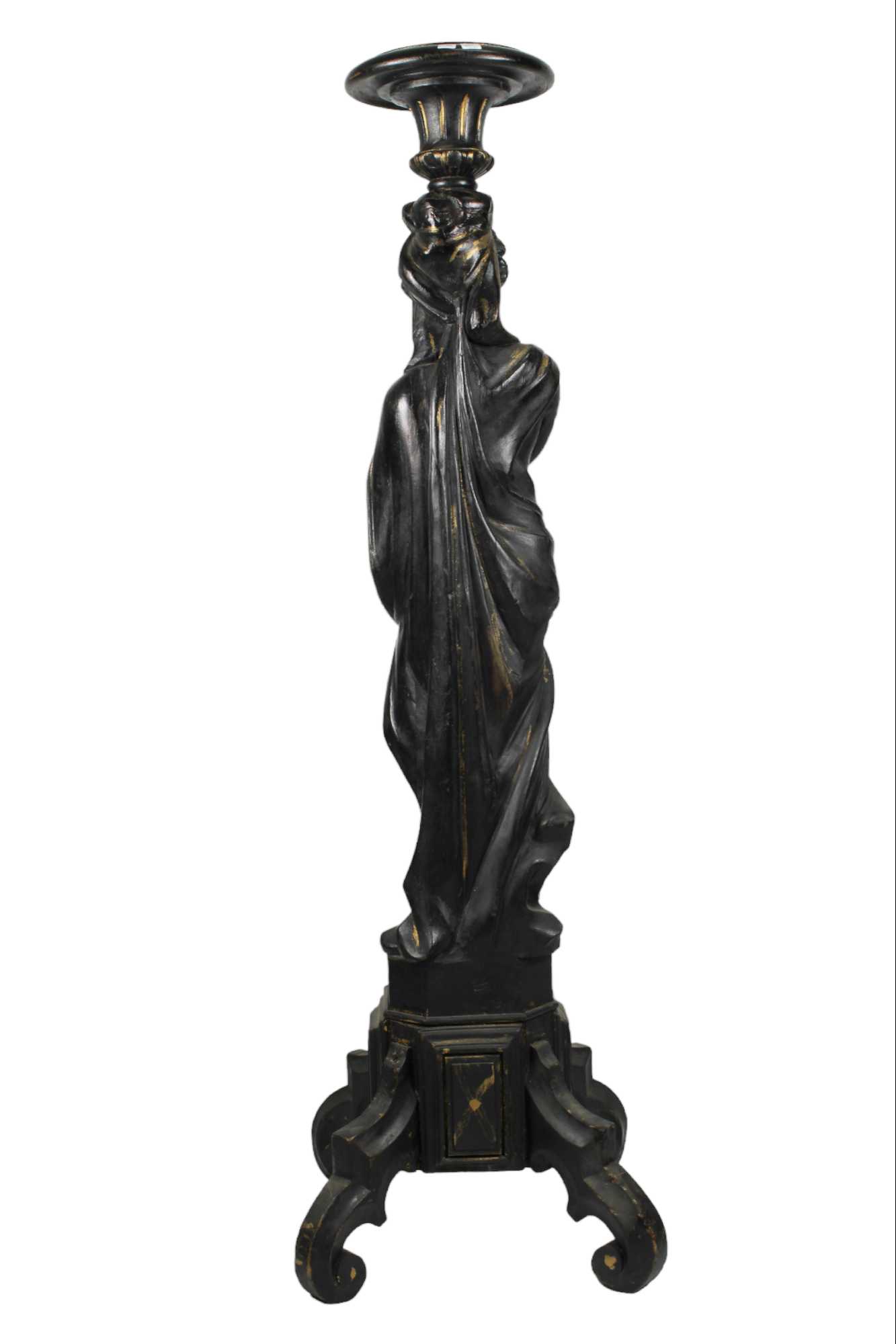 TRESPOLO in legno scolpito laccato e dorato raffigurante figura femminile Venezia II metà del XIX secolo h cm 145 x 45 x 45