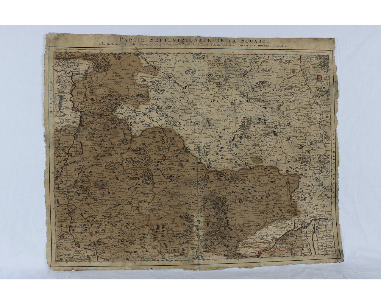 CARTINA GEOGRAFICA DE LISLE Guillaume (Germania) Partie septentrionale de la souabe. Carta geografica stampata ad Amsterdam chez L. Convens et C. Mortier geographes sec XVIII Inc. rame h cm 50 x 65