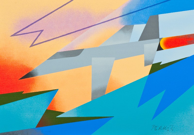 Peruzzi Osvaldo, Sarri Sergio LOTTO UNICO DI DUE OPERE - "Osvaldo Peruzzi", Aero jet, Serigrafia su carta, cm. 35x50, es. 63/150, firma e timbro a secco "Edizioni Bora", in basso a destra, tiratura in basso a sinistra, sul verso: Certificato di Garanzia "Edizioni Bora", Bologna; - "Sergio Sarri", Bagnante, 1982, Acquaforte e acquatinta di cm. 33,7x24, su carta di cm. 50x36, es. 109/150, firma e data in basso a destra, tiratura in basso a sinistra, sul verso: Certificato di Garanzia "Edizioni Bora", Bologna.