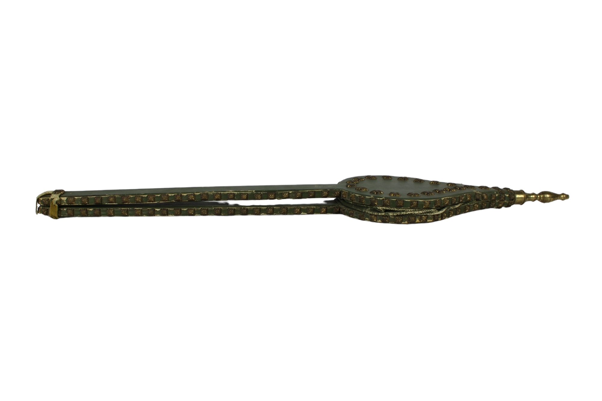 SOFFIETTO DA CAMINO in legno rivestito di pelle arricchito da applicazioni in bronzo dorato Francia XVIII-XIX secolo h cm 95 x 21 x 10
