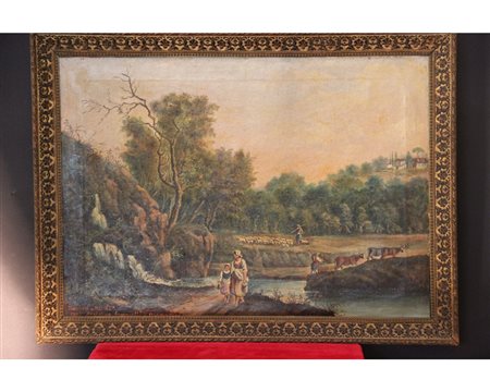 DIPINTO OLIO SU TELA raffigurante paesaggio lacustre firmato Tracuzzi h cm 41 x 58
