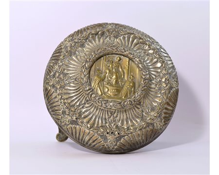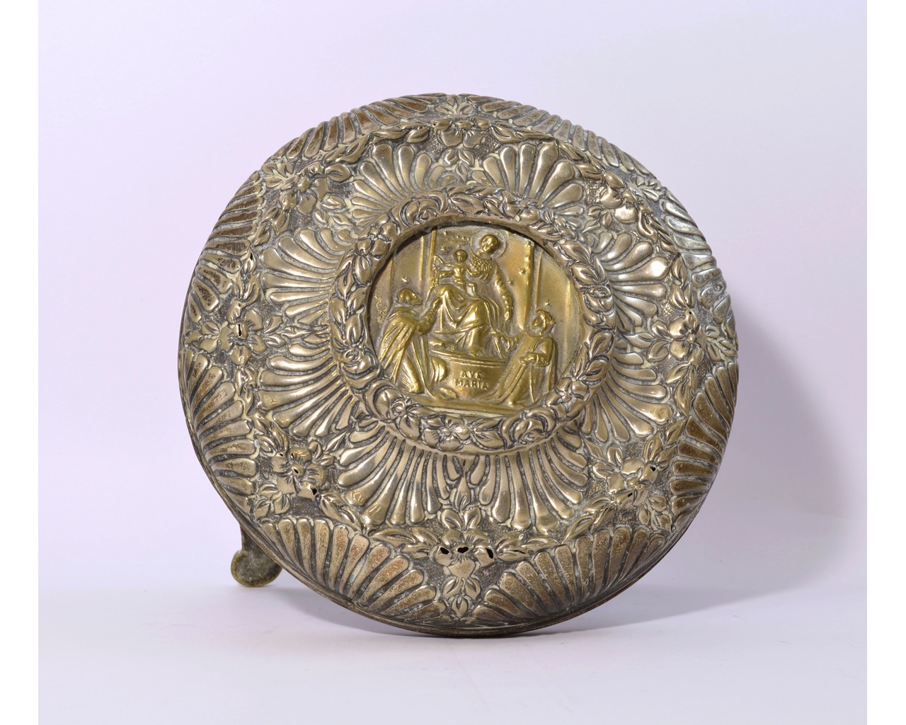 BASSORILIEVO MADONNA DI POMPEI in argento dorato dentro cornice in argento finemente cesellata Italia fine XIX secolo h cm 13 x Ø 14