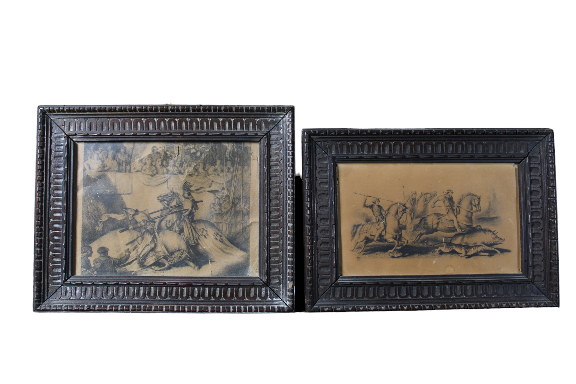 LOTTO DI 2 CORNICI DI GUSTO RINASCIMENTALE in legno scolpito contenenti stampe Sicilia primi 900 h cm 24 x 30 / h cm 22 x 31