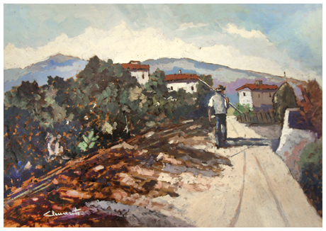 VILLY CLEMENTE Livorno 1923 – 1999 Senza titolo Olio su faesite 50 x 70. Firma in b. a s.