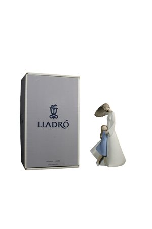 SCULTURA in porcellana dipinta raffigurante donna con bambina manifattura Lladro' corredata da scatola e certificato di garanzia h cm 31 x 18 x 10,5