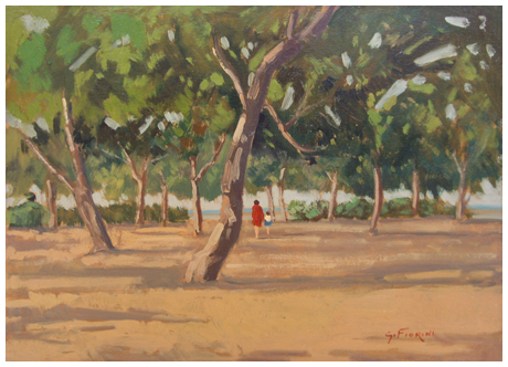 GINO FIORINI Livorno ? – Livorno 2005 Senza titolo Olio su tavola 30 x 40. Firma in b. a d.; sul verso timbro studio dell’artista.
