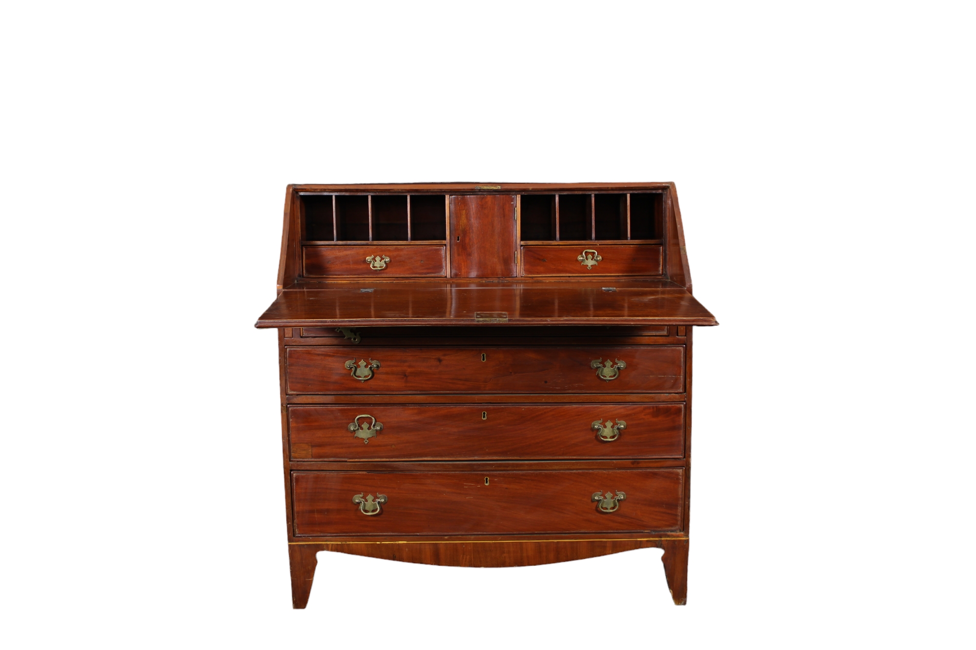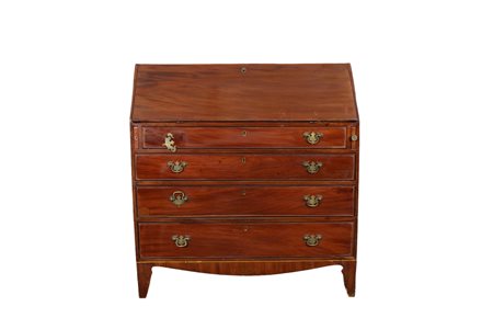RIBALTA in mogano a 4 cassetti e anta ribaltabile contenente scarabattolo Inghilterra XIX secolo h cm 110,5 x 103,5 x 48