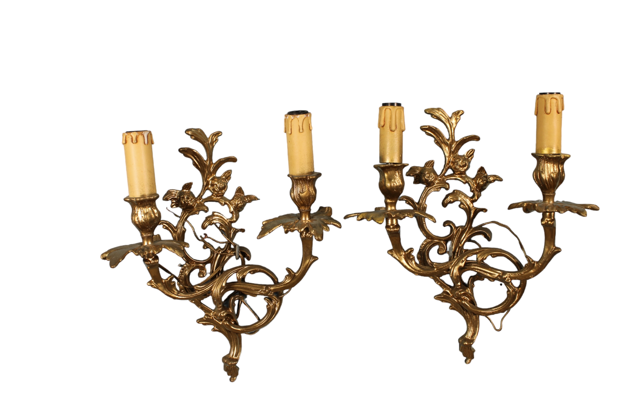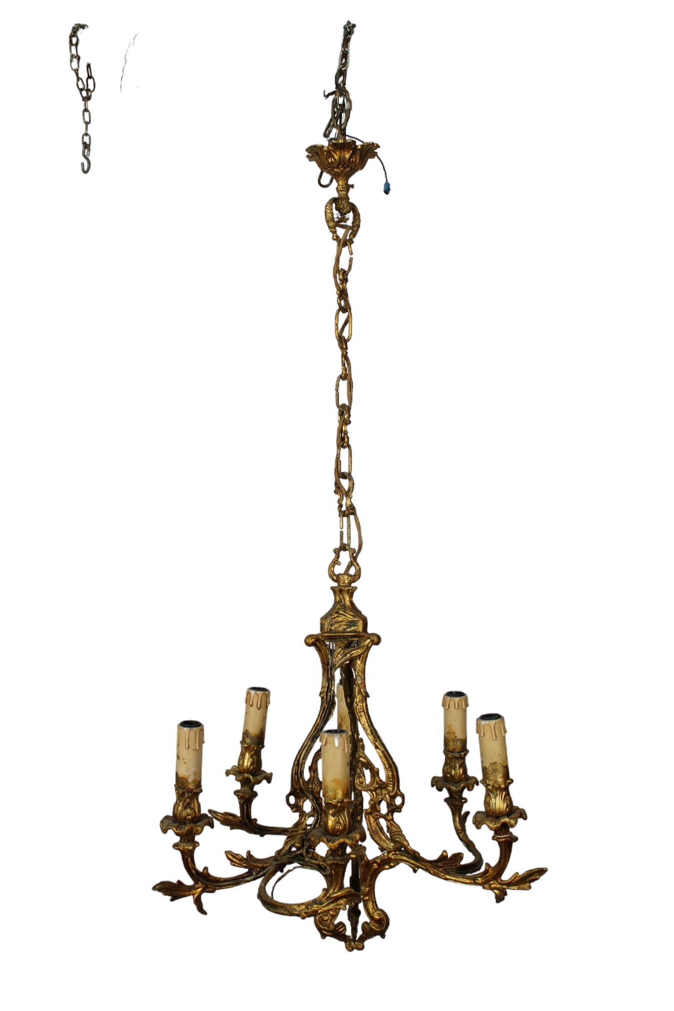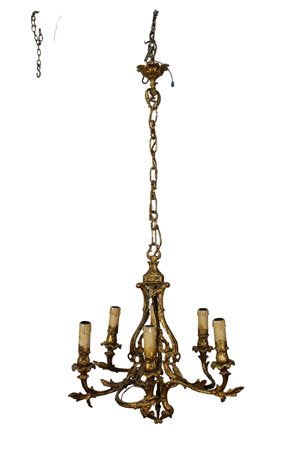 LOTTO COMPOSTO DA 1 lampadario a 6 luci e una coppia di appliques a 2 luci di gusti Luigi XV in fusione di bronzo cesellato e dorato Francia primi 900 lampadario h cm 50 x 43 / appliques h cm 35 x 28 x 10