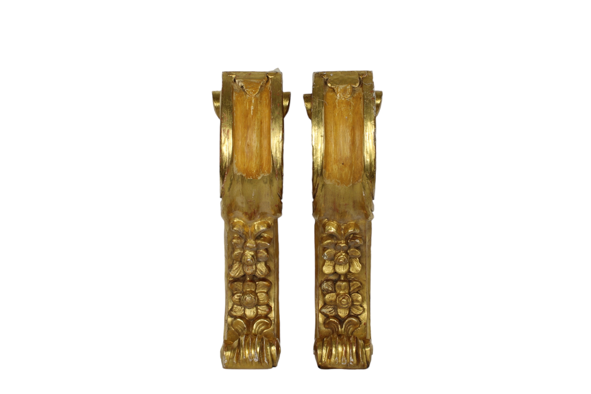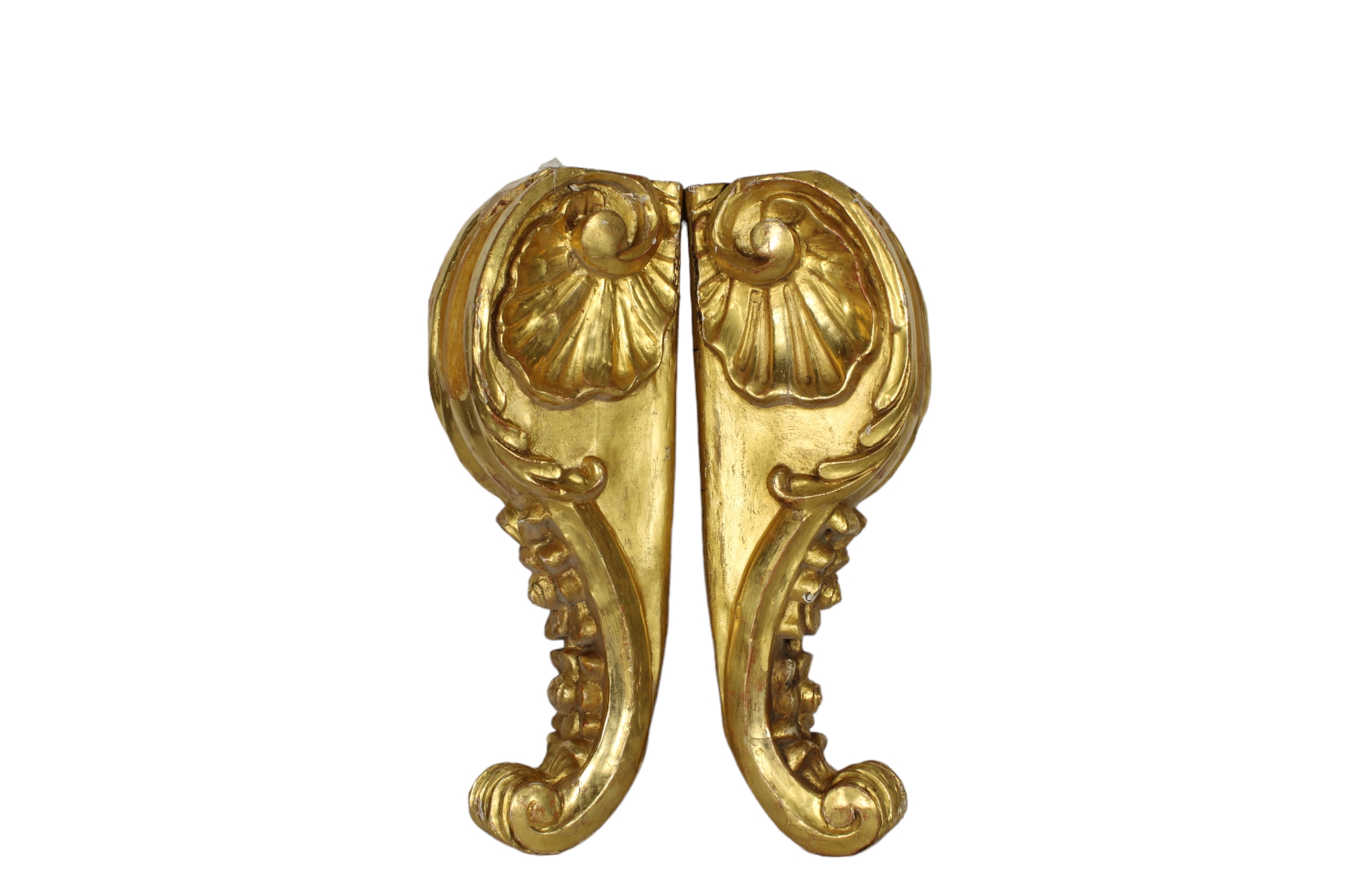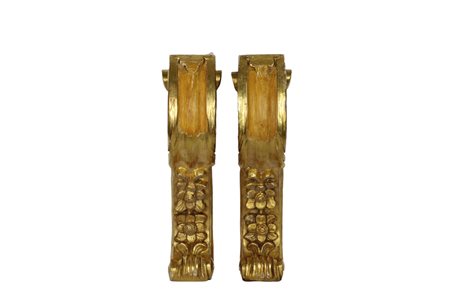 COPPIA DI ELEMENTI DI GUSTO LUIGI XV in legno scolpito e dorato Italia XVIII secolo h cm 53 x 15 x 19