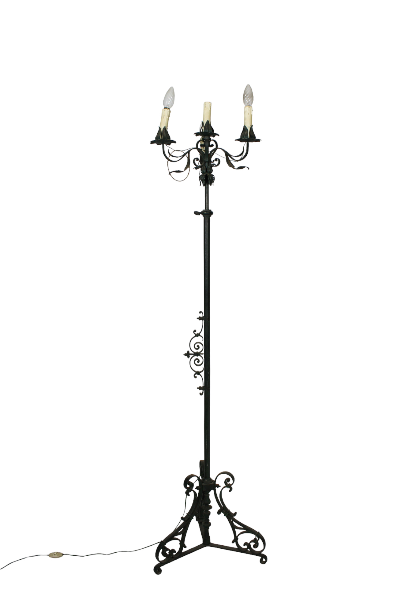 PIANTANA in ferro battuto estendibile a 4 luci maestranze siciliane primi 900 h cm 164 x 41