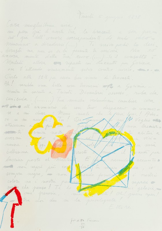 Giosetta Fioroni (Roma 1932) SENZA TITOLO Litografia su carta, cm. 71x50, es. 90/90 Firma e tiratura in basso al centro, timbro a secco "Grafica dei Greci", Roma, in basso a destra. Sul verso: Certificato di Garanzia "Grafica dei Greci", Roma.