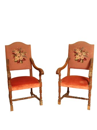 COPPIA POLTRONE STILE SEICENTESCO XX secolo h cm 117 x 55 x 50